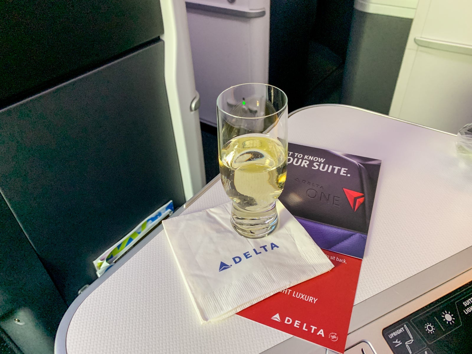 I asked for a glass of the bubbly, and unlike in Delta's outdated 767 seats, the modern, stylish glassware matched the modern, stylish seat.