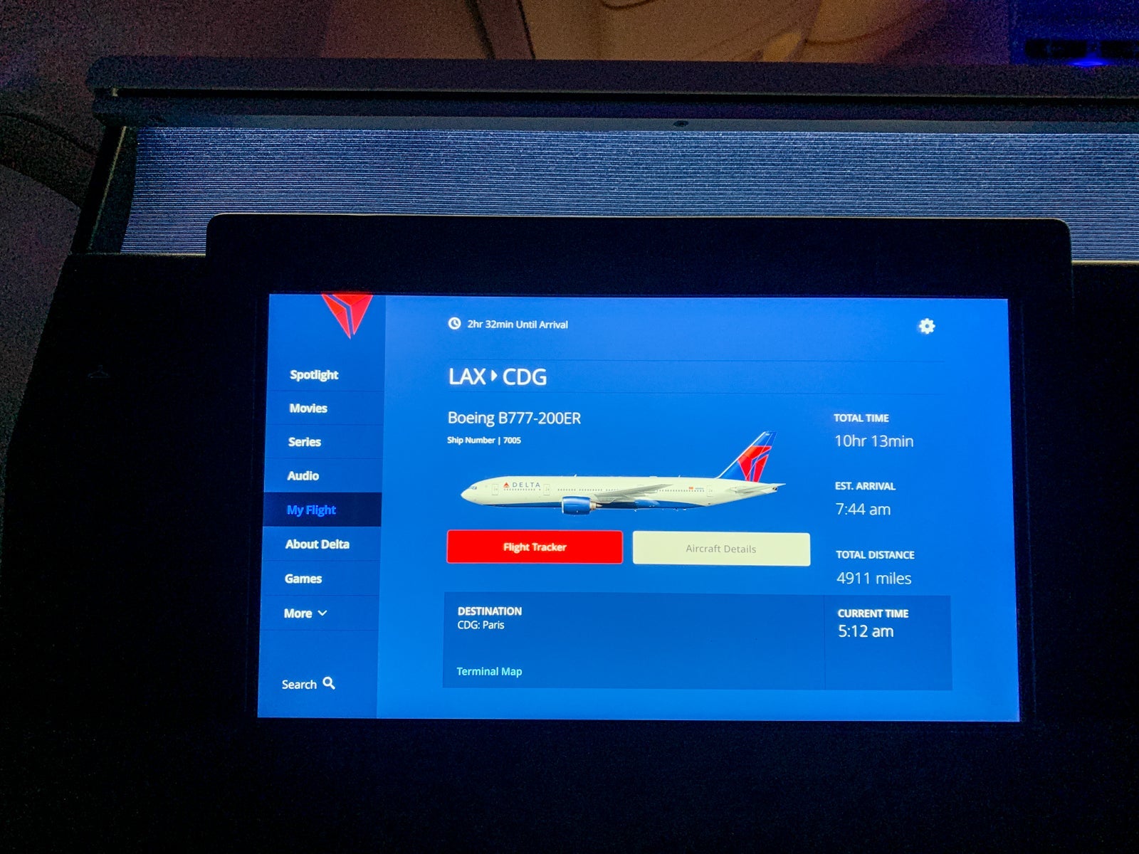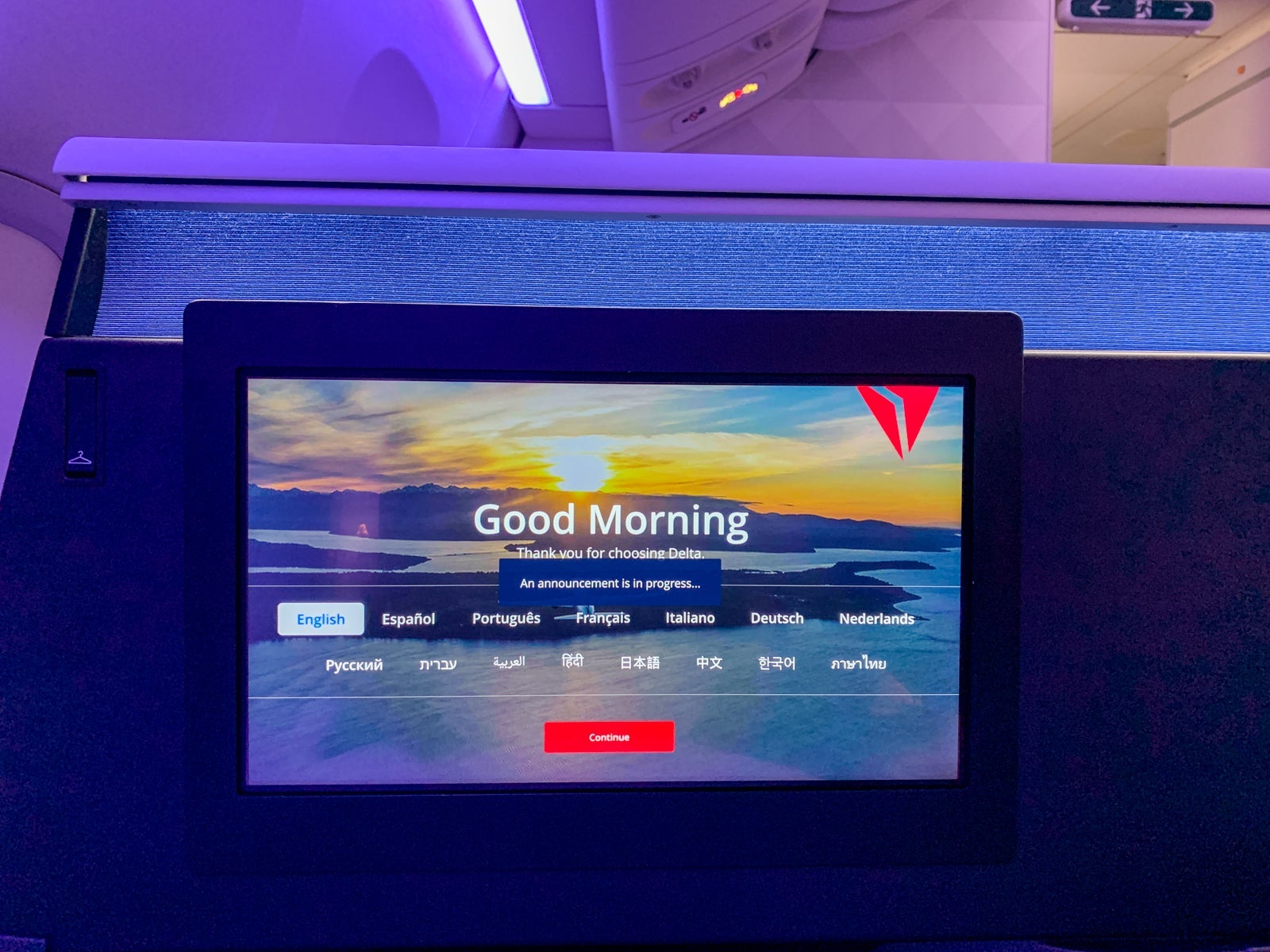 The graphics were sharp, and the screen itself was responsive. The screen didn't tilt or adjust at all, but even when fully reclined, I could clearly see what I was watching. The quality of the IFE hardware was vastly improved in the Delta One Suite when compared to older Delta One products.