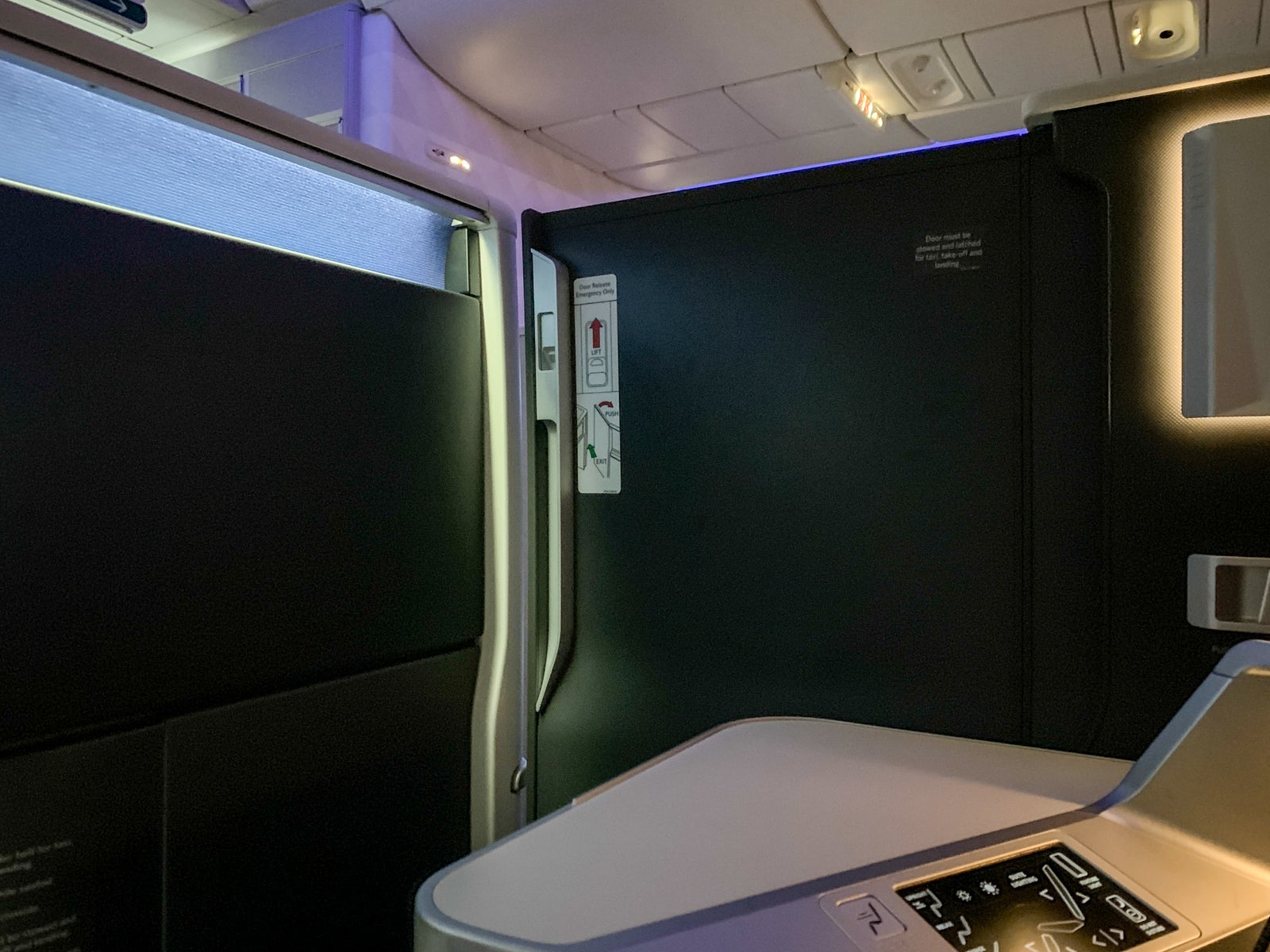 And, of course, each passenger had a closing door, though there was a small gap when it was "closed." Though it didn't matter a whole lot thanks to the door, seats on each side of the aircraft -- the A and D seats -- in even rows were protected from the aisle, meaning the seat was basically flush against the wall and the side console was between the passenger and the aisle.
