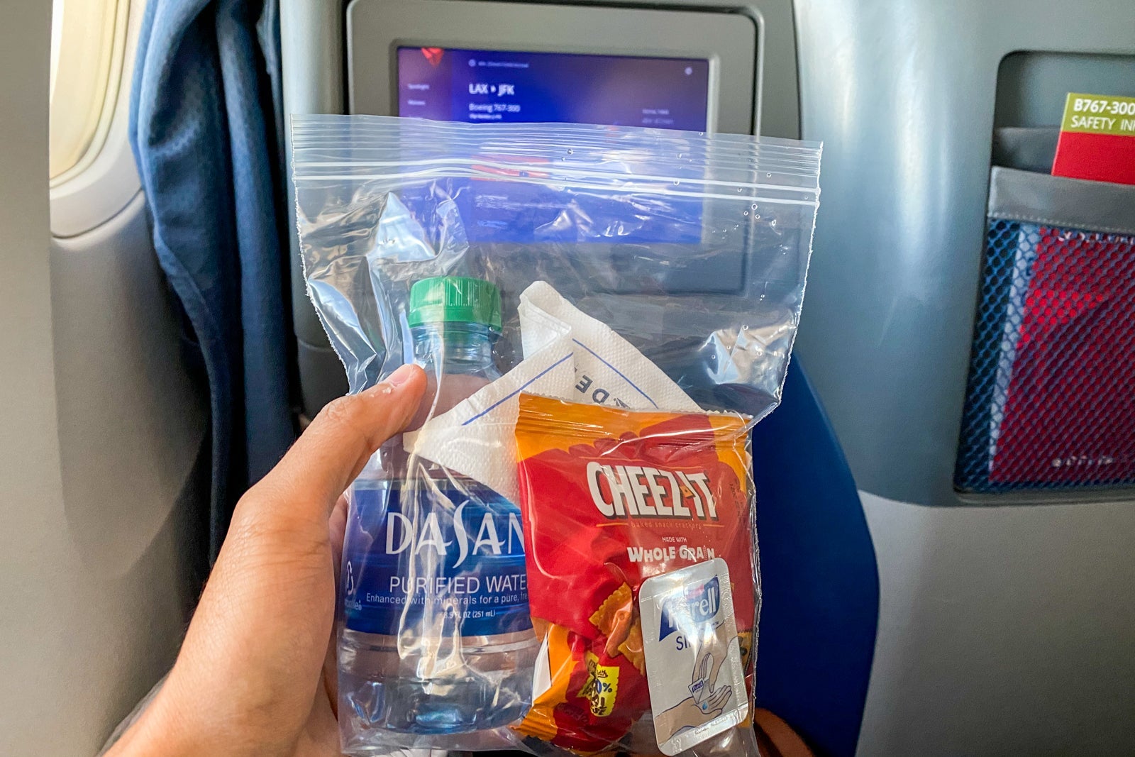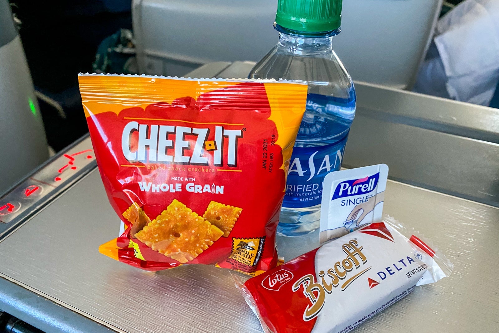 As mentioned, you'll get a snack bag with a small Dasani water, Biscoff cookies and Cheez-it crackers. This was available to everyone onboard.