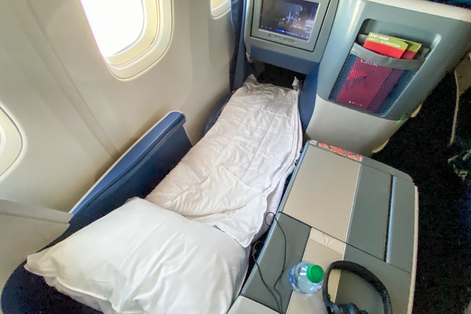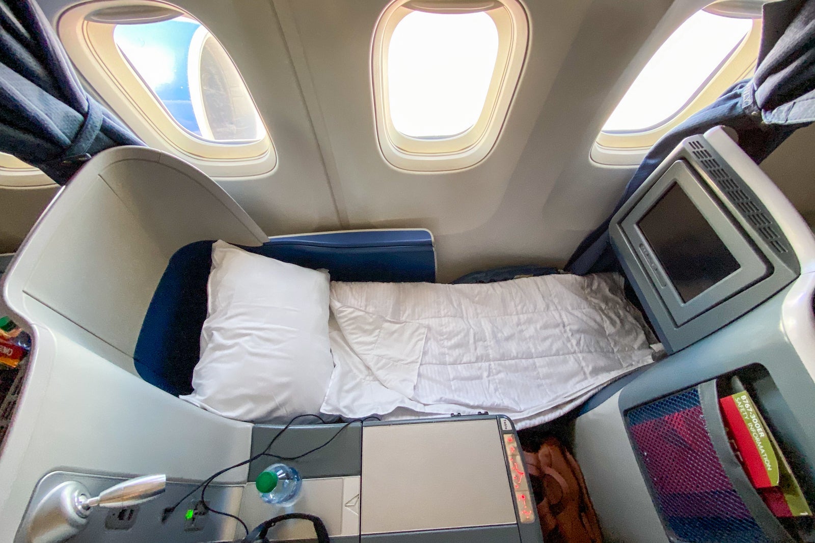 Yes, the screens are tiny and the buttons for the seat are completely worn out (and not very responsive) but it's a lie-flat seat after all and this was a flight during the pandemic -- so I'll take what I can get.