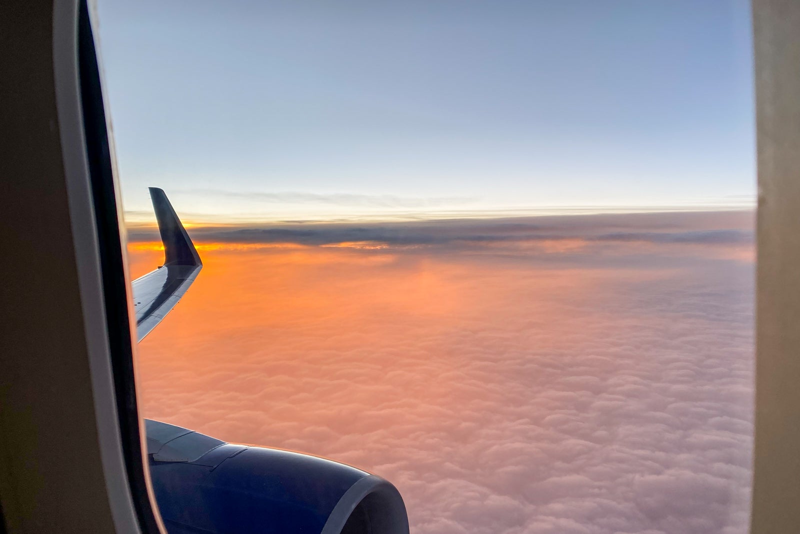 At the end of the day, the best view is not the screen ahead but the window beside. I caught a beautiful sunset as the 767 raced towards JFK.