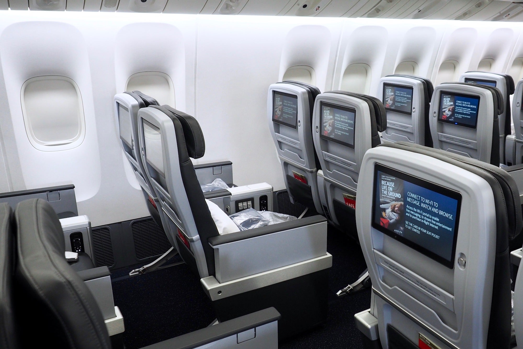 Each offers 38 inches of pitch. For comparison's sake, these seats offer the same measurements as premium economy aboard American Airlines' 777s.