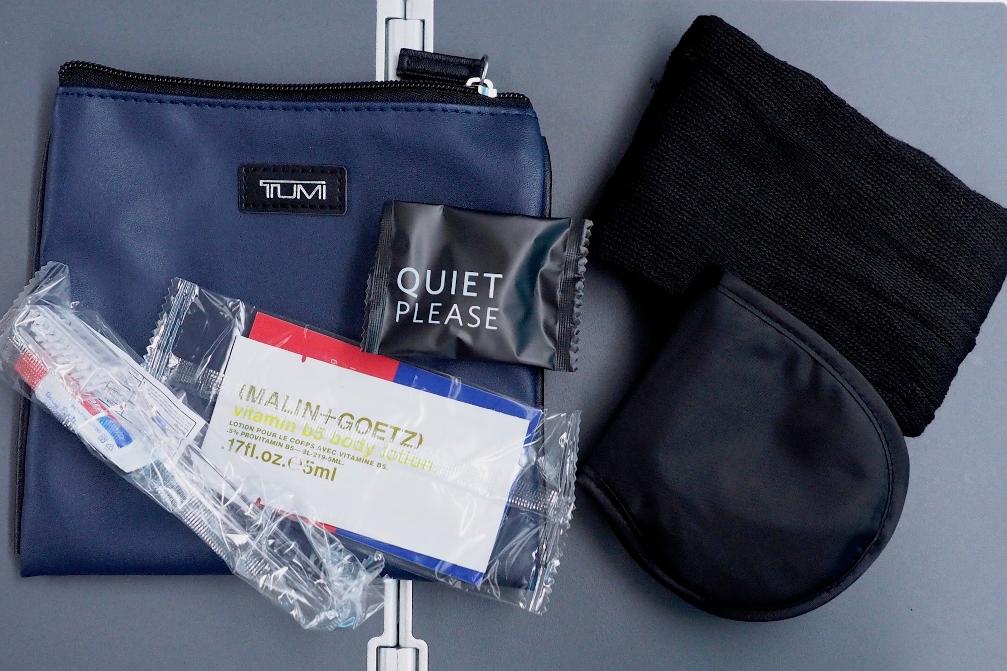 Inside the amenity kit were essentials like a toothbrush and toothpaste, socks, an eye mask and Malin+Goetz body lotion. While the contents were fairly standard, I thought the bag itself was one of the better premium-economy ones out there and could easily be reused.