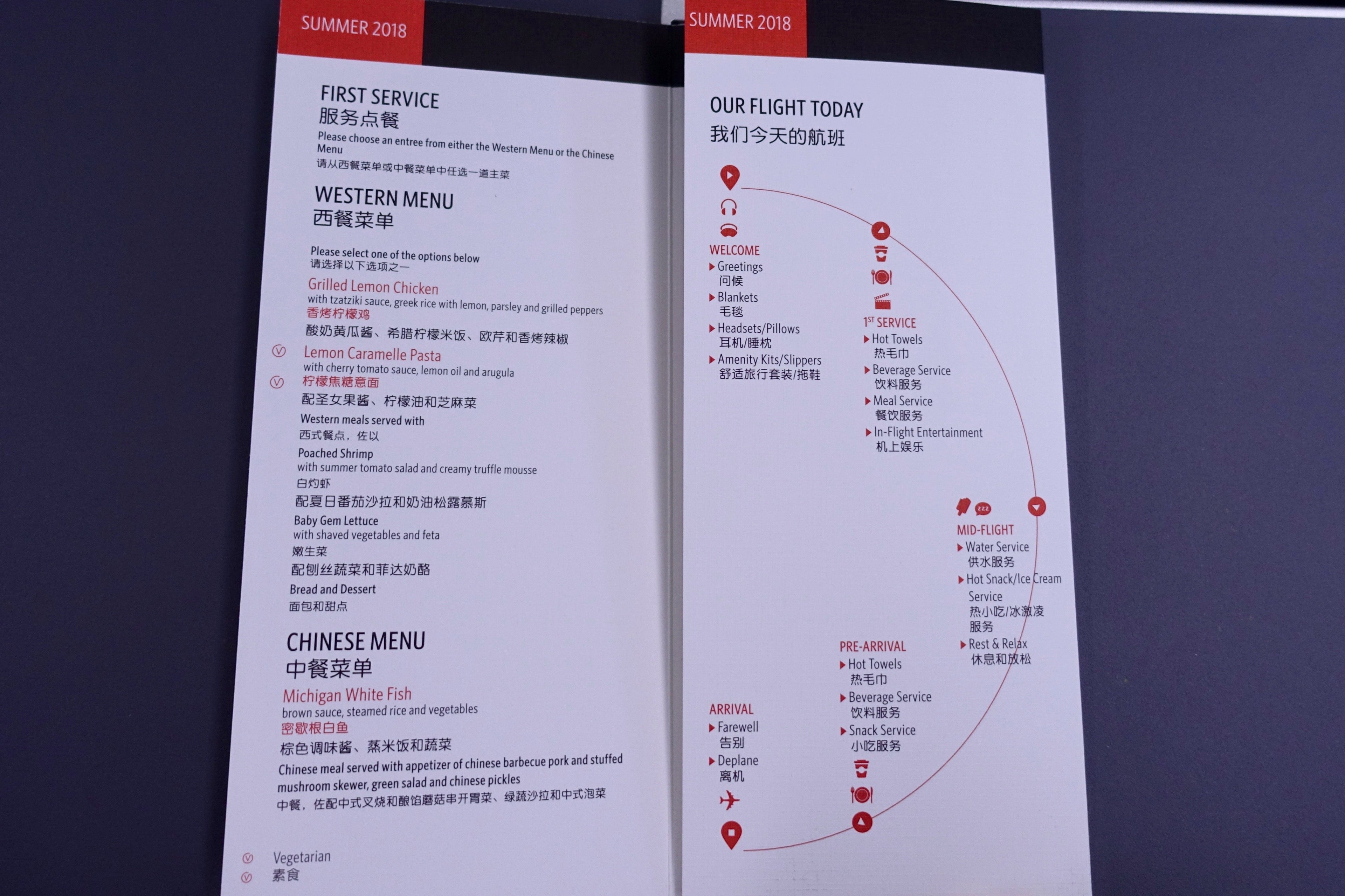 I was then presented with an impressive menu that didn't just include the food and beverage offerings but also information on timing for each service. I'm the type of person who loves to know as much about the in-flight experience as possible, so I appreciated the detailed timeline of events.