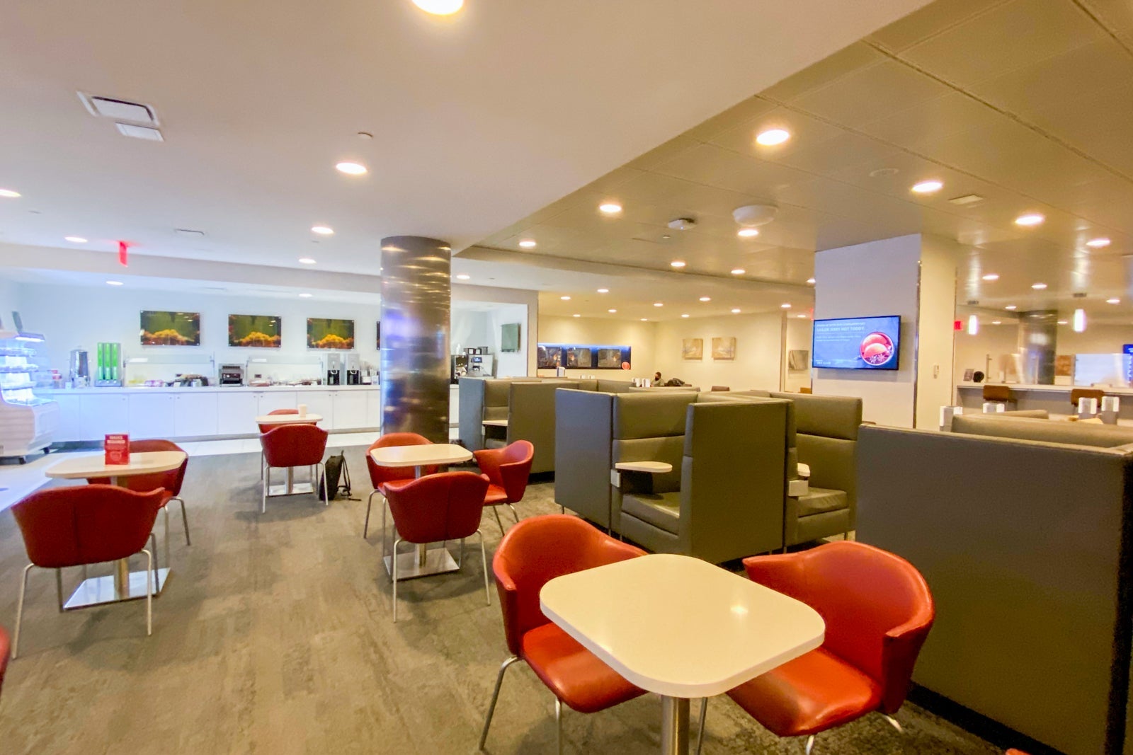 Before I arrived at the gate, I made a pit stop at the LGA Terminal C Delta Sky Club, where I grabbed a coffee and quick breakfast. The offerings were surprisingly robust and presented buffet-style -- with breakfast sandwiches, salads and a full continental spread available. I was able to enter the SkyClub using the access included with The Platinum Card® from American Express (must show eligible Amex card, government issued I.D. and same-day corresponding airline ticket).