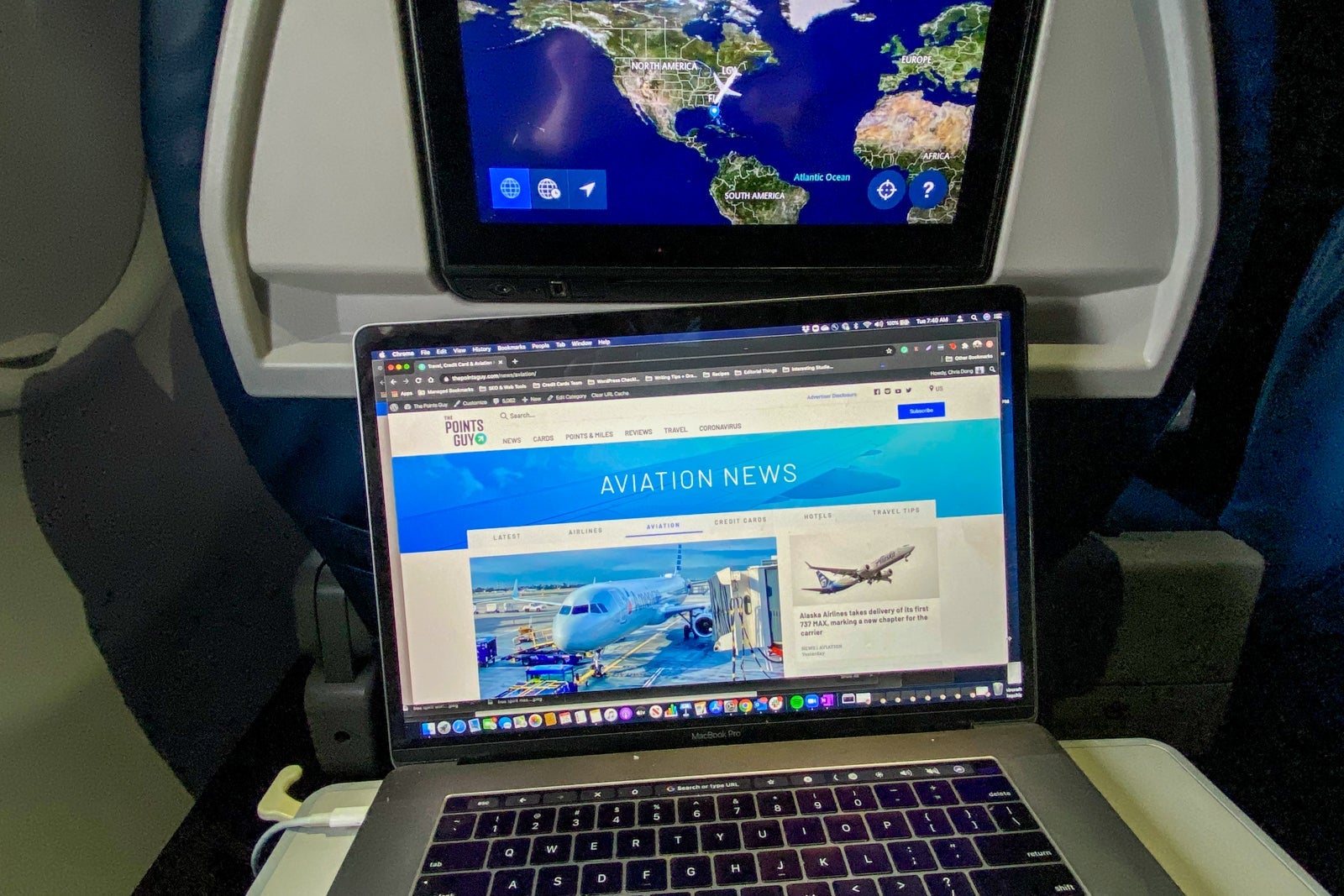 At every seat -- including in economy -- is an adjustable headrest, decent recline and a tray table large enough to get some work done on a 13-inch MacBook.