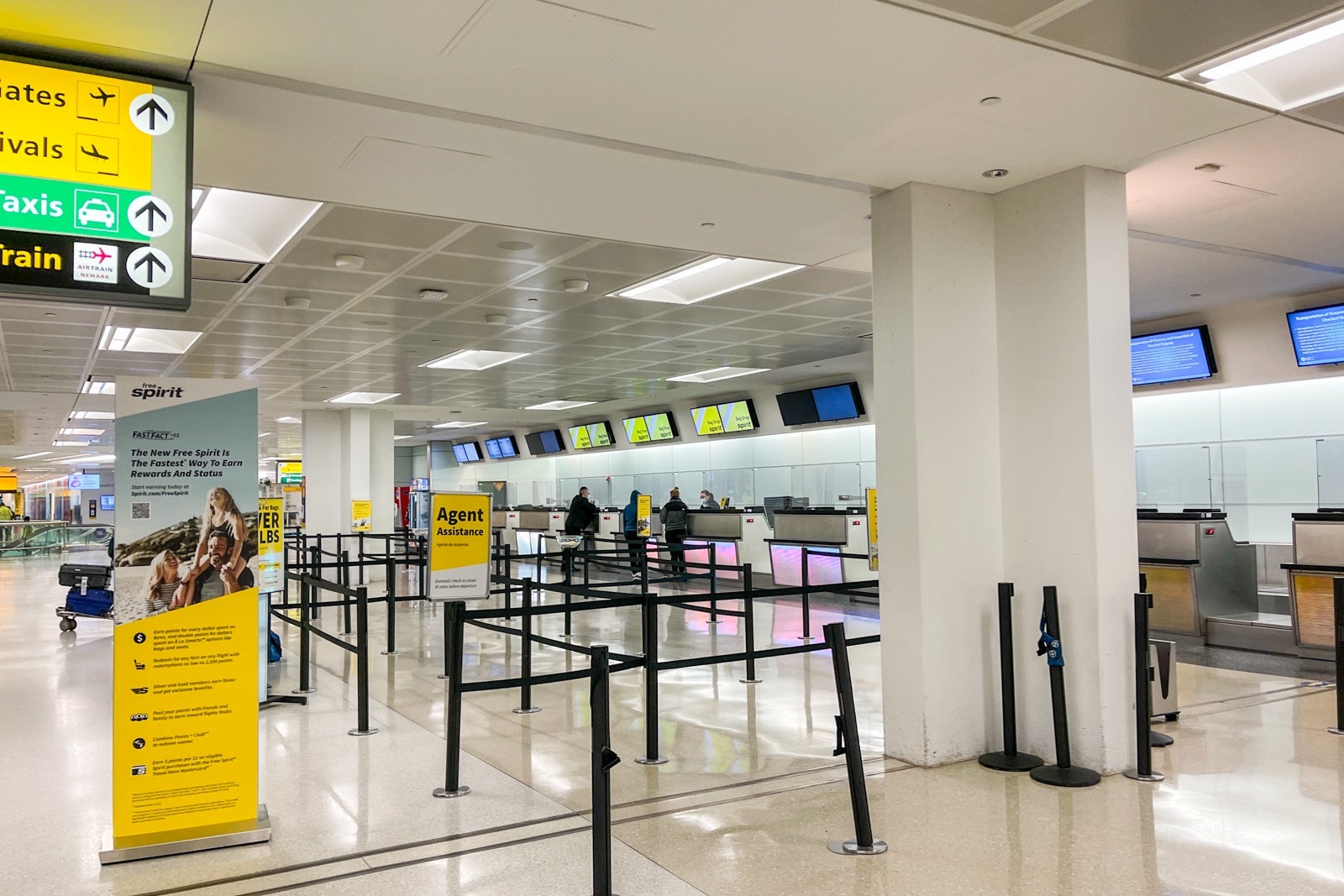After a long Lyft ride from my home in Queens to Newark Liberty International Airport (EWR), I was greeted with an almost-empty Spirit check-in counter. There were a few passengers checking bags before the early flight, but I didn't see any lines or other situations that would make me uncomfortable in a COVID-19 world.