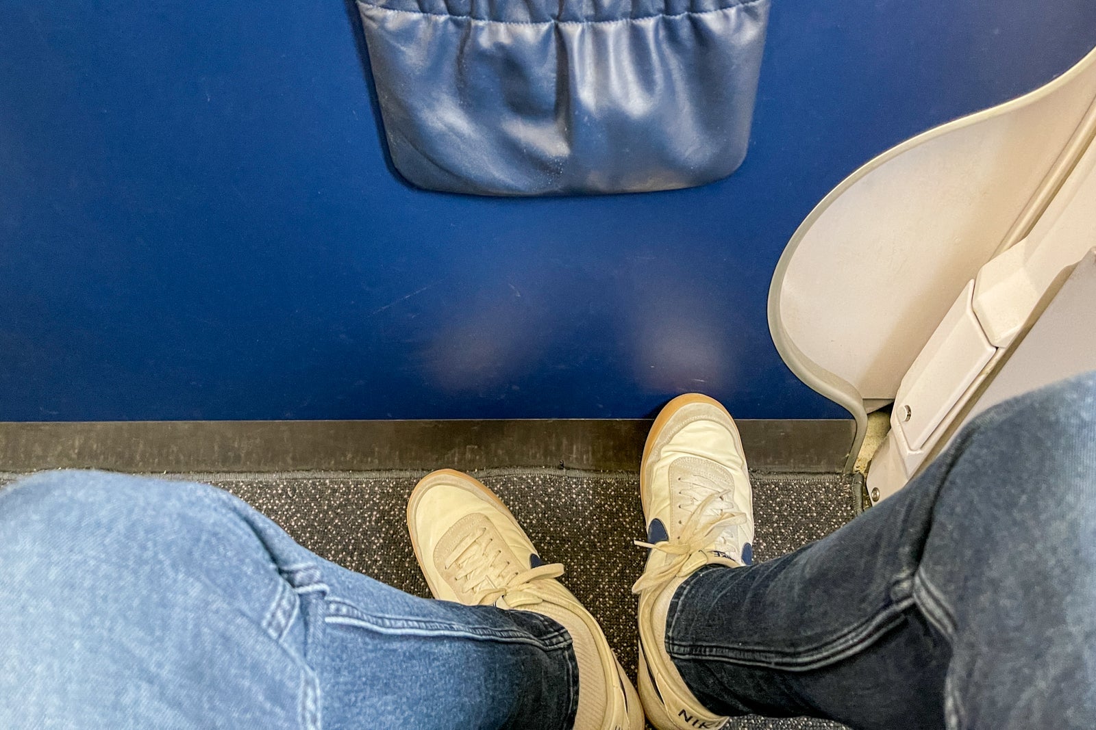 Compared to first-class, obviously, it's a tighter squeeze with 31 inches of pitch but legroom was plenty adequate for my 5-foot, 7-inch frame.