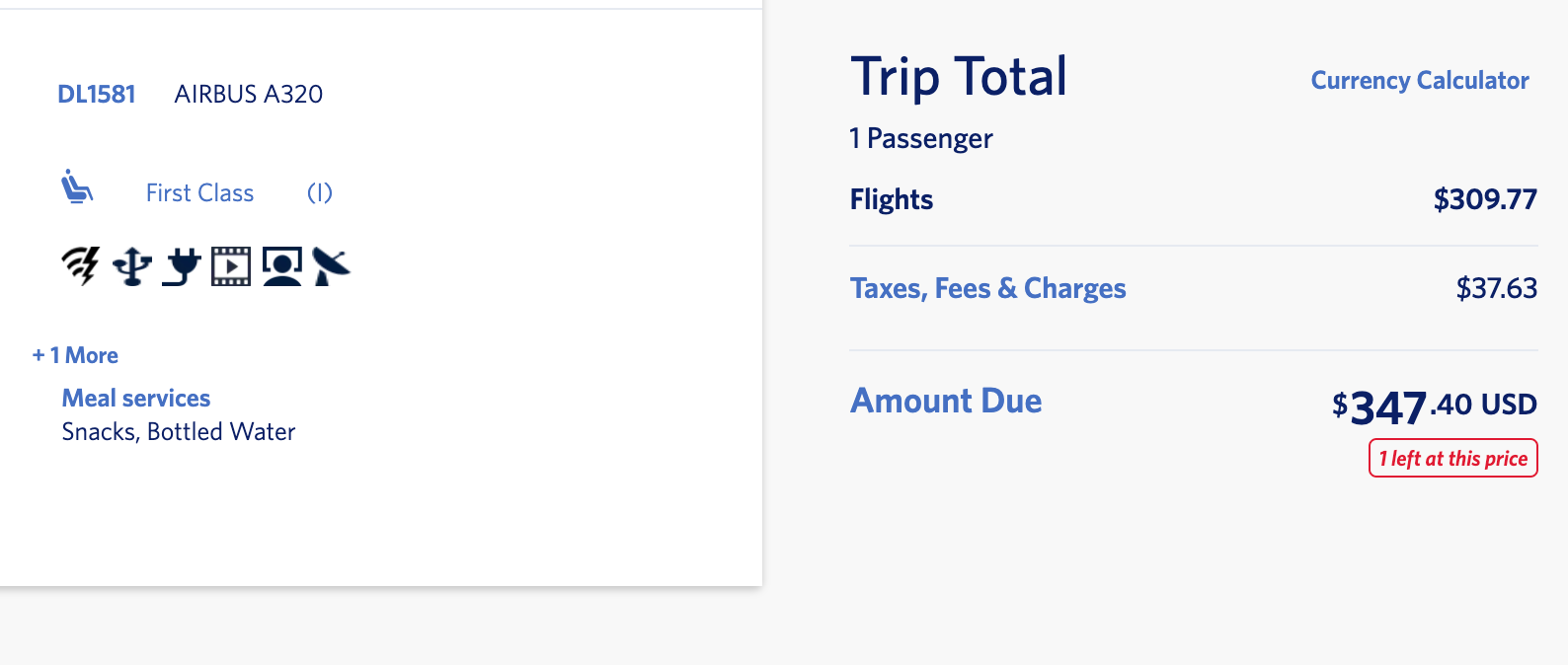 The outbound flight to Fort Lauderdale was in Delta first class and priced out at $347.40 while the return flight to New York's LaGuardia Airport (LGA) in Delta basic economy cost $103. These flights were booked about a week in advance.
