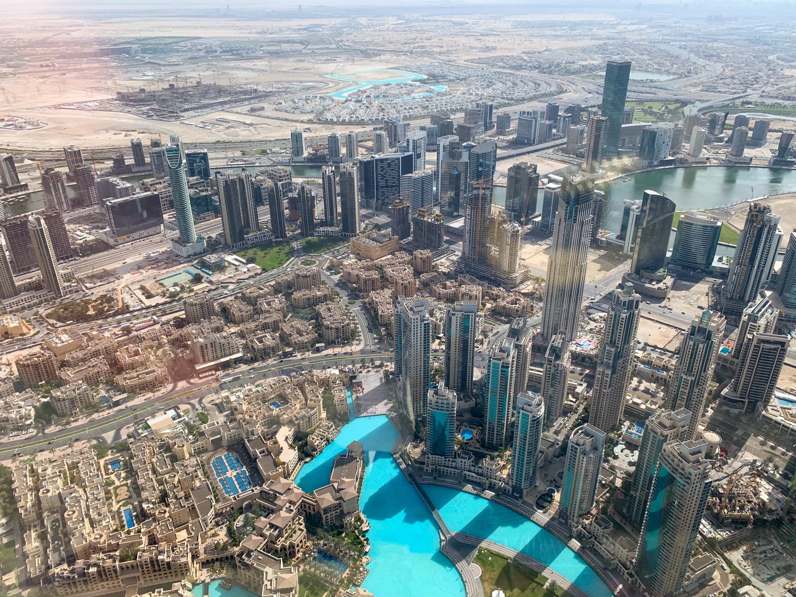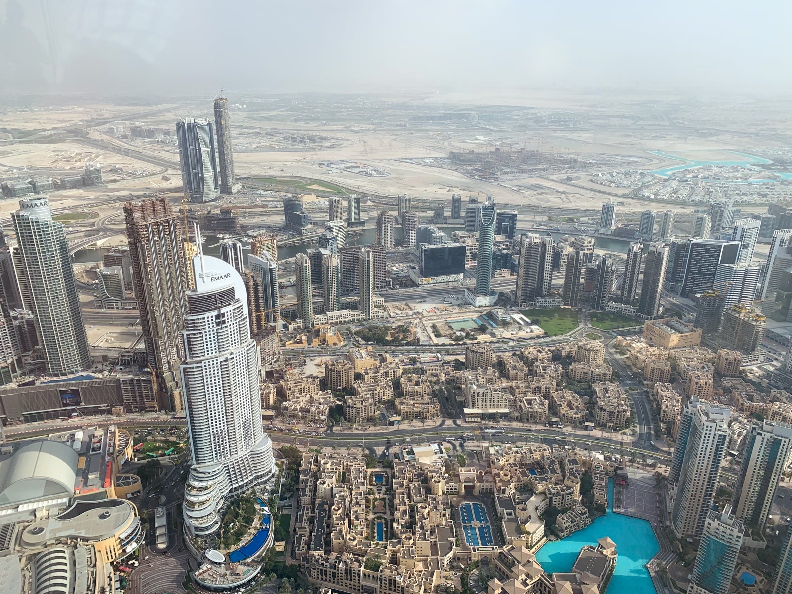 Before we left, I asked if it was possible to see the airport from At.mosphere. You can't, but the bathrooms offered an incredible top-down view of the famous Dubai fountains.