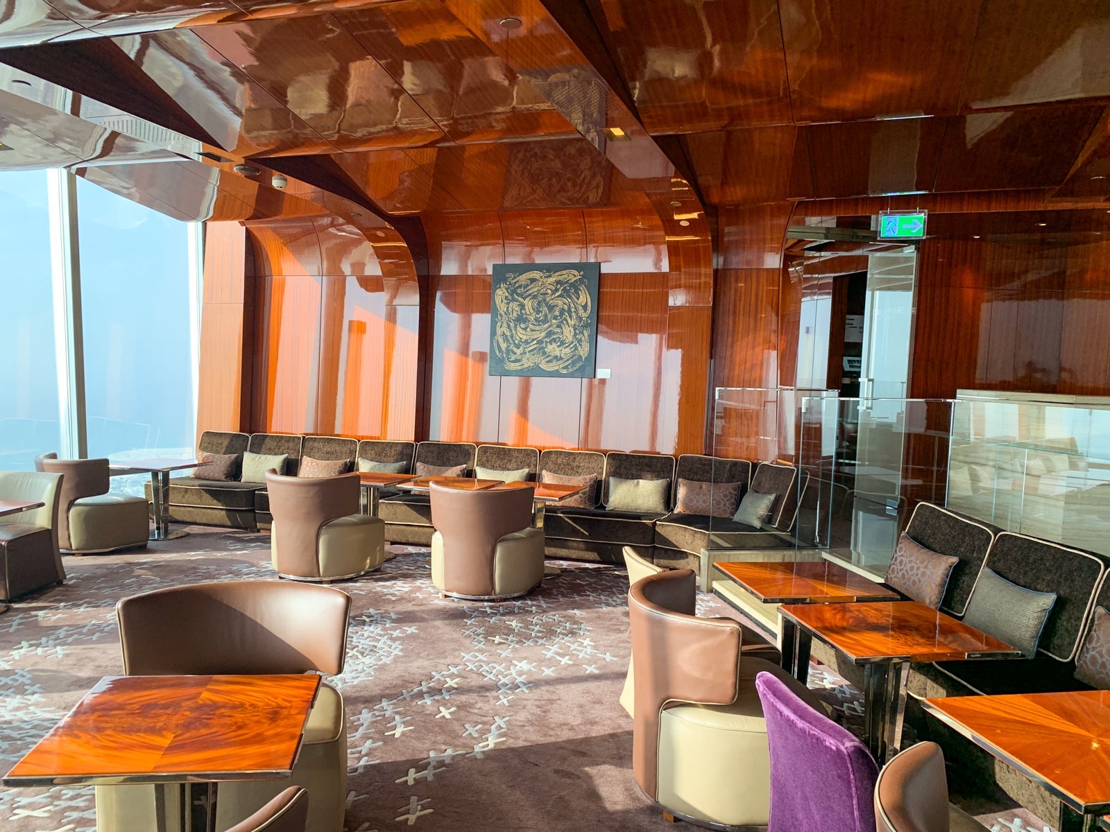 There was a large bar in the center, though no one was sitting there (likely because it offered no views at all).