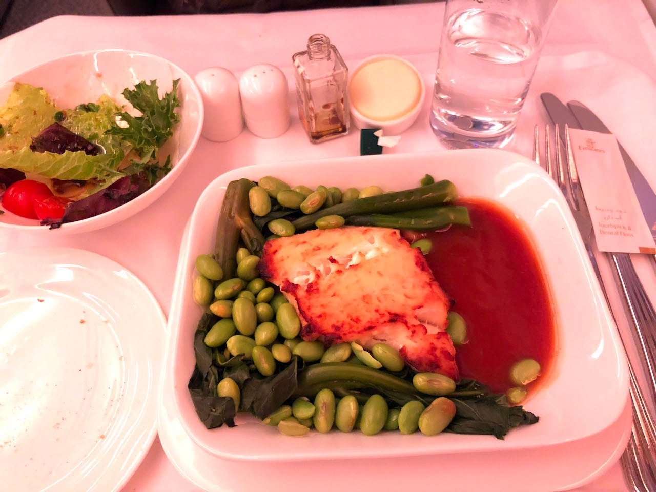 Overall, I found the food on this flight to be good, but not great. On my first Emirates A380 business class flight, I found the food to be amazing, so this was a step down. That being said, by no means was the food on this flight bad — it just didn't meet my expectations that I had from my last experience. Maybe it's because this flight was catered in New York, whereas my other flight was catered in Dubai.