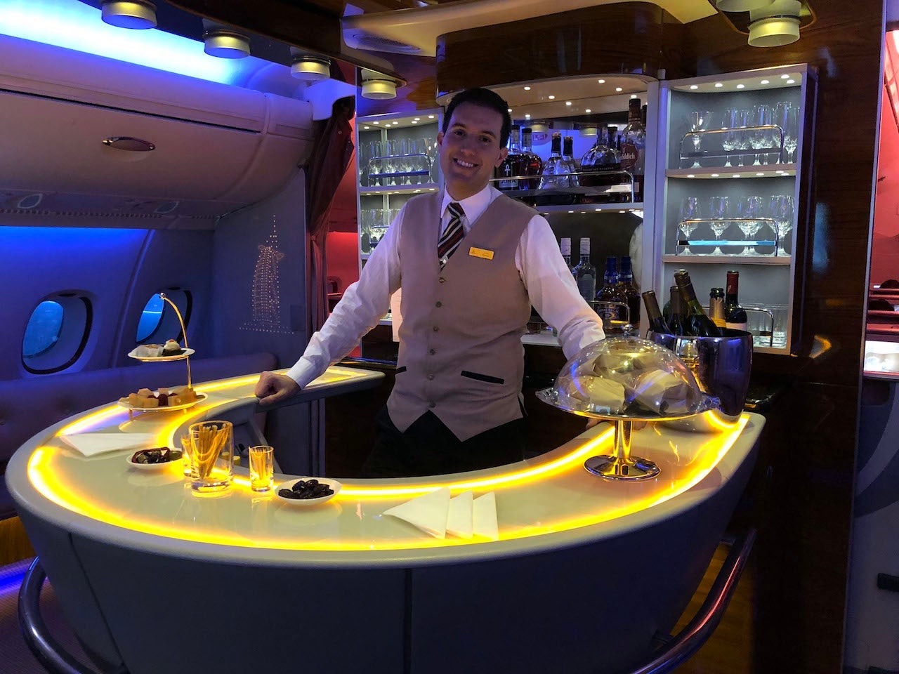Emirates takes its in-flight entertainment and amenities seriously. It's those parts of the soft product that help to set it apart from many of its competitors. Arguably the most famous amenity on board the Emirates A380 — aside from the onboard shower, which is reserved for first-class passengers — is the bar in the rear of the upper deck.