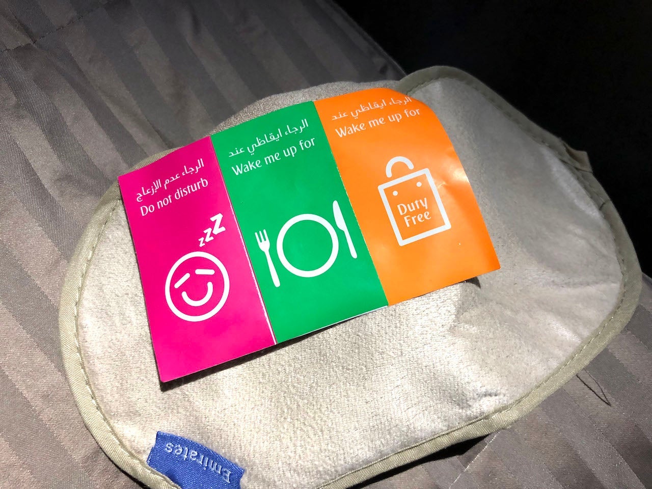 Aside from the major amenities, I also found some of the smaller touches to be especially noteworthy. Each business-class passenger got a set of three stickers, which you can place on your seat when sleeping: one alerting flight attendants to not wake you at all, one telling them to wake you up for meals, and one telling them to wake you up for duty free. It's a simple way to avoid the awkward interactions that can come with the sleeping patterns on a long-haul flight.