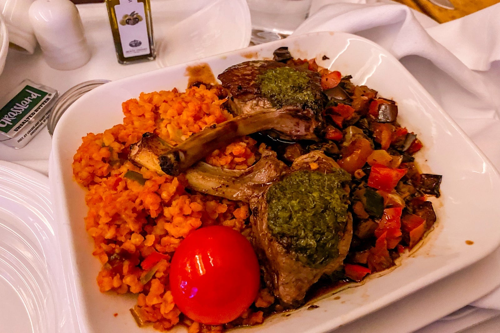 Dinner was served all at once (appetizer, main course and dessert), which is a change I hope sticks around post-pandemic. I ordered the cream of spinach soup, which was surprisingly filling, and the rack of lamb, which was a delicious choice. I chose the chocolate and hazelnut tart for dessert, which was just the sugar rush I needed.