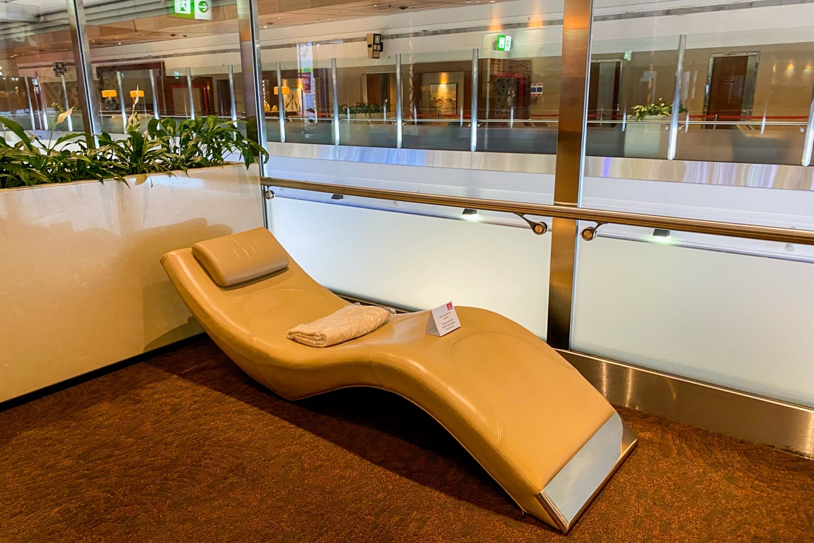 There were ample places to sit — really, there were seats everywhere — which made social distancing easy. Showered and full, I decided to get in a quick cat nap on one of the lounge chairs just before it was time to board the flight to Phuket.
