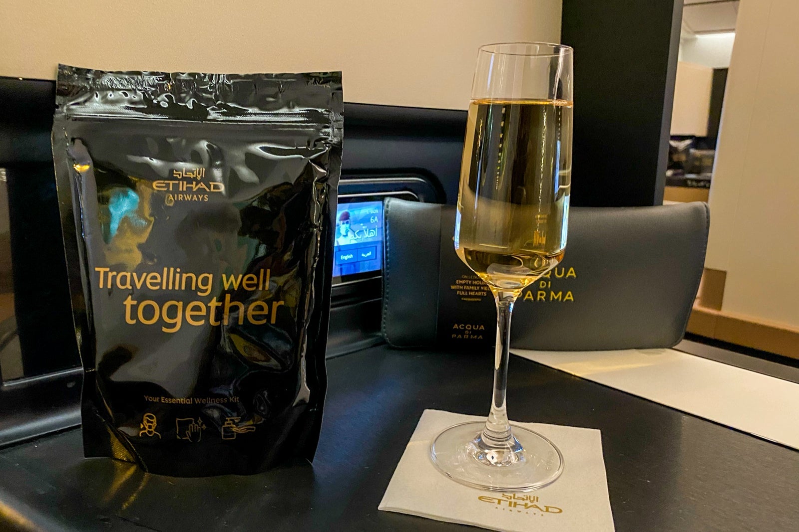 While Etihad doesn't offer a bar like Emirates, the drinks were the star of the show. Not everyone can make a good Bellini (a cocktail made with prosecco and peach puree), but I will go on record that the cabin crew on Flight EY 101 made the best Bellini I've ever had. I ordered several during the flight, and each one was better than the previous one. Cheers!