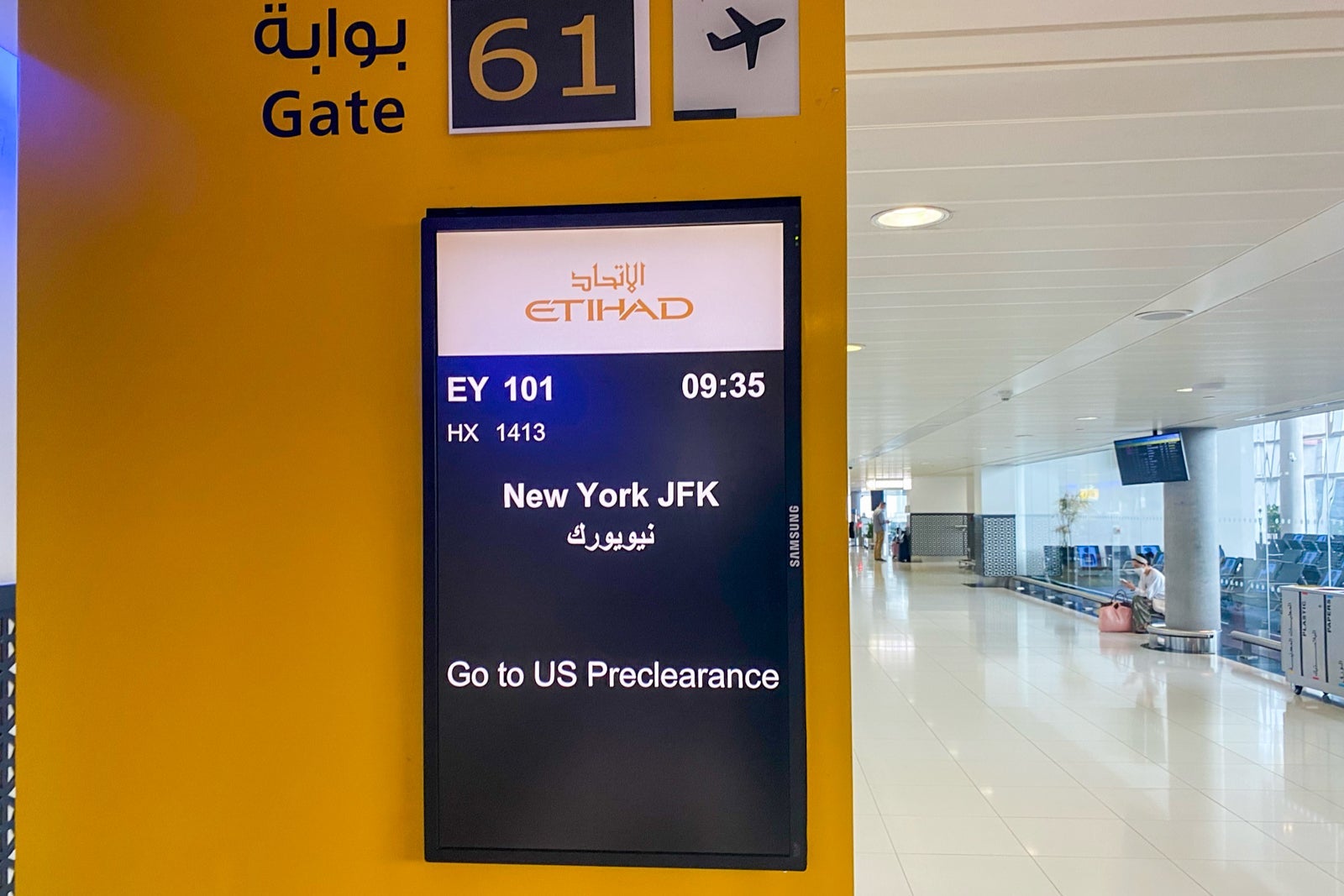 Abu Dhabi is a U.S. Customs and Border Protection Preclearance facility, meaning that travelers clear customs in the United Arab Emirates and land in the U.S. as domestic passengers. There is a priority security line for business- and first-class passengers. There's a second Etihad lounge post-security, but it was unfortunately closed.