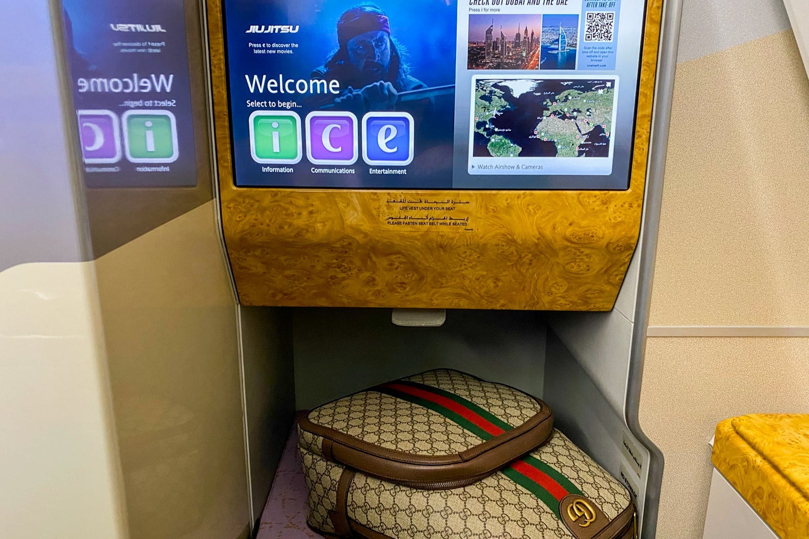 There were plenty of places to store my stuff, and the armrest included a hidden cubby for me to stash my shoes and headphones. I kept my backpack in the footwell but still had enough room — even while lying in bed mode.