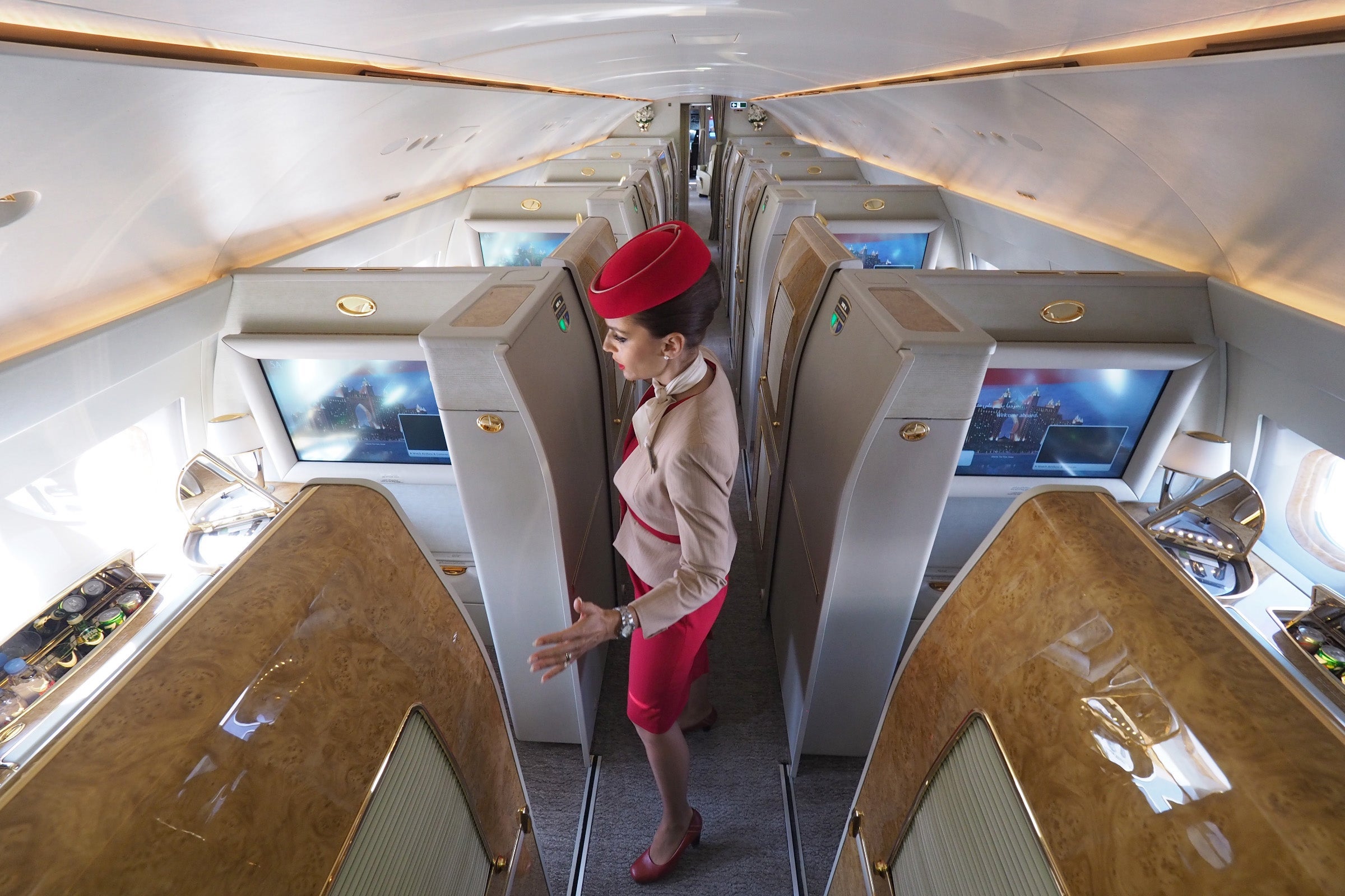 The plane has a range of just over 4,300 miles, so from its home in Dubai you can reach as far as Iceland, South Africa or Tokyo, but flights to the US will require a quick stop to refuel.