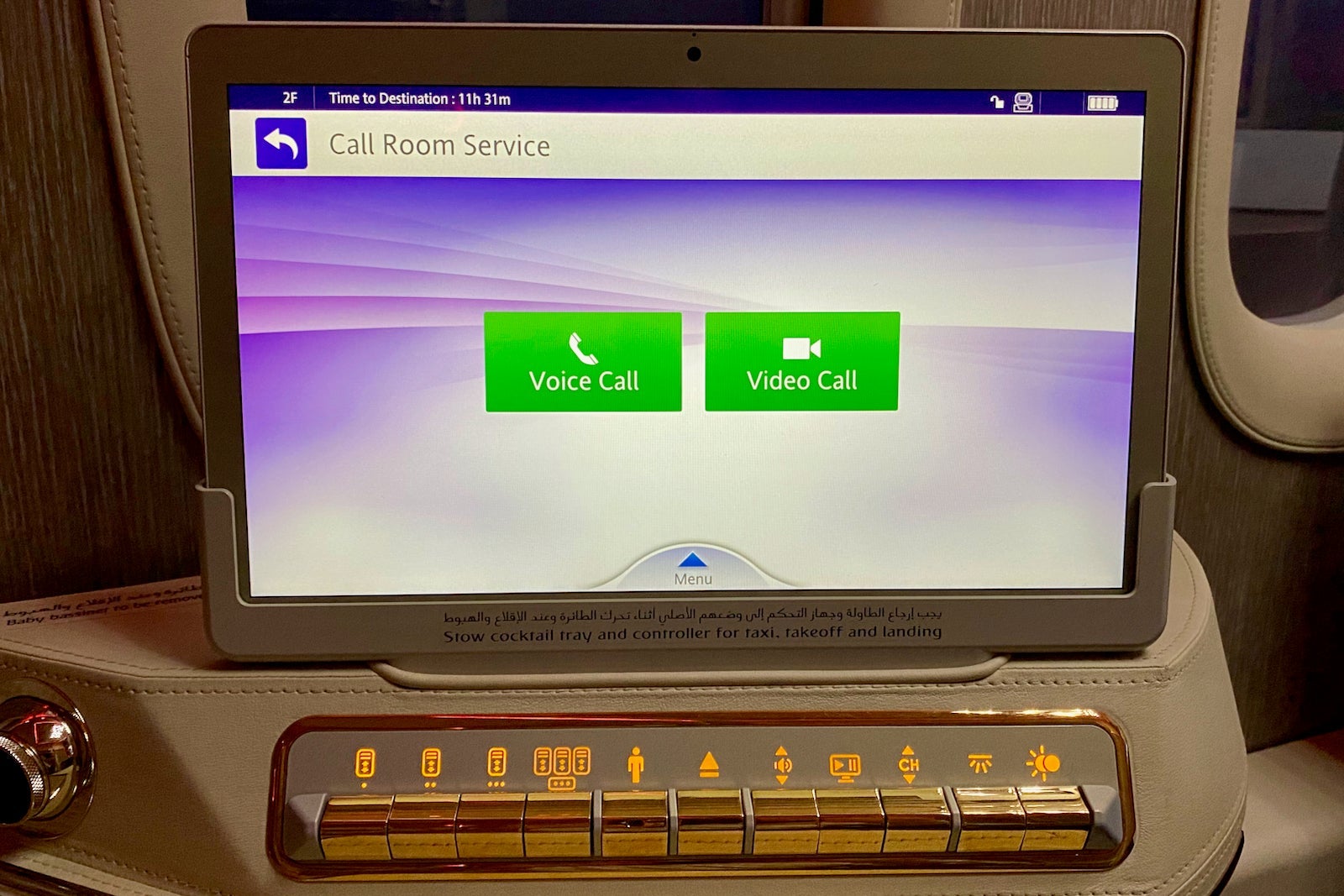 The tablet next to your seat doesn't just control the inflight entertainment system. It also sports a video camera for you to place a room suite service order from the crew.