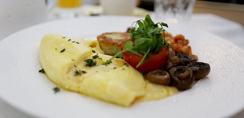 In addition to my Thanksgiving dinner, I also had a lovely omelette for breakfast shortly before my flight landed. It was carefully plated with a variety of sides, including mushrooms, baked beans and a roasted tomato.