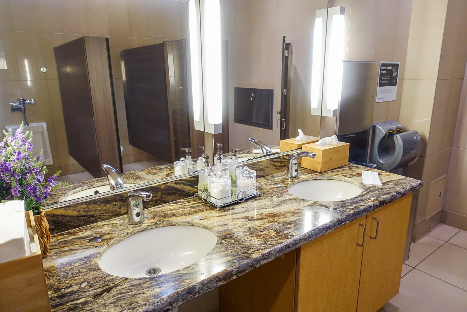 The lounge doesn't offer any showers, but the bathrooms were clean and stocked with basic amenities like hand cream, cotton balls and Q-tips.