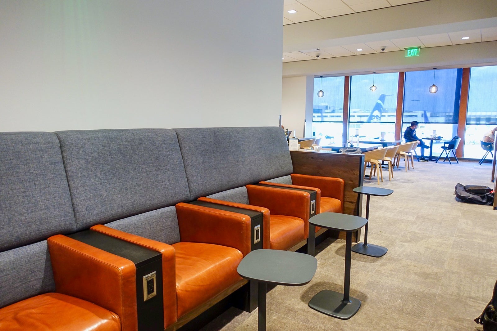 Along the walls are more comfortable couches. Although the white walls feel a bit bland, the decor and design as a whole is fresh and modern, similar to what you'd find in Alaska's new lounges in Seattle (SEA) and New York.