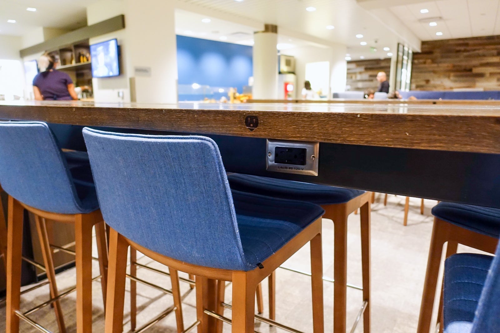 Although the new look is certainly welcome, the best part of the updated lounge is how many power outlets there were. There are power outlets built into most seats and beneath tables, making it easy to find a place to charge up. The Wi-Fi was pretty fast, too — I had no trouble getting work done and uploading these photos from the lounge.