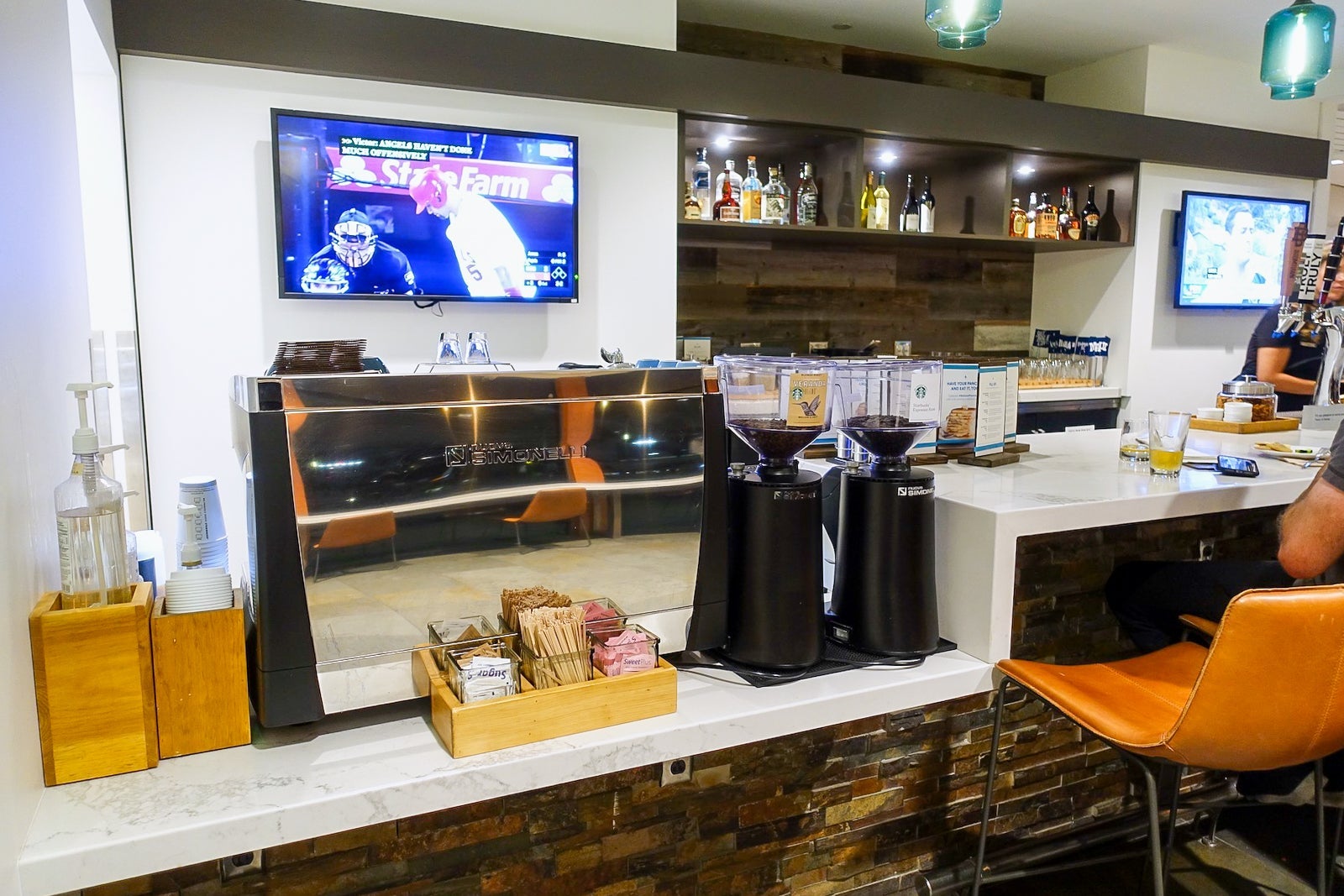 In addition to the Starbucks coffee machine in the buffet area, the lounge now offers complimentary, barista-made espresso beverages and loose-leaf teas for in the lounge or to go.
