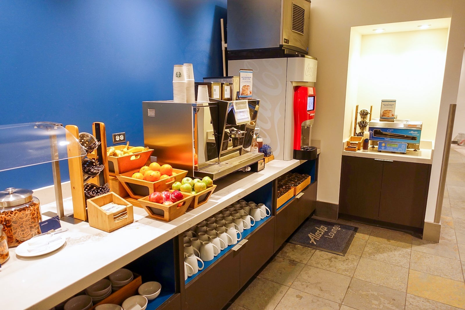 There are a few ways you can gain access. Entry is open to Alaska Lounge members, Admirals Club members, first-class guests (doesn't include upgrades) and anyone purchasing a day pass ($50 or $25 if you use your Alaska Airlines Visa Signature® credit card). Like the Anchorage (ANC), New York-JFK and Portland (PDX) lounges, this location is also a part of the Priority Pass lounge network, though access is limited to three hours prior to departure and may be restricted due to space constraints. A number of credit cards like the Chase Sapphire Reserve and the Platinum Card® from American Express include complimentary Priority Pass memberships when you enroll.
