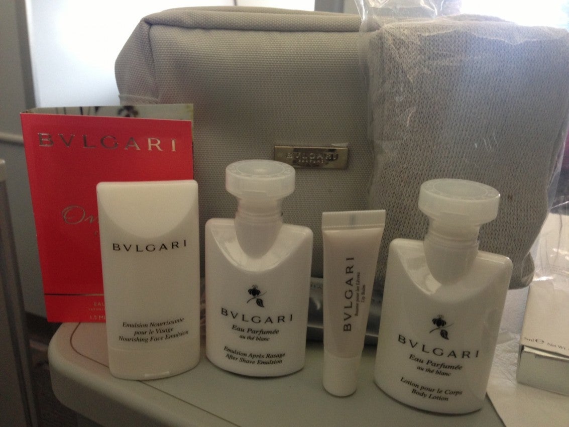 I always love seeing the products that come in different airlines' amenity kits. Alitalia gave out a nice Bulgari cosmetic case that came with a nourishing face emulsion, after shave emulsion, lip balm, body lotion, and socks. Each seat also had a 15.4-inch inflight entertainment system with a bunch of music, TV, game and movie selections.