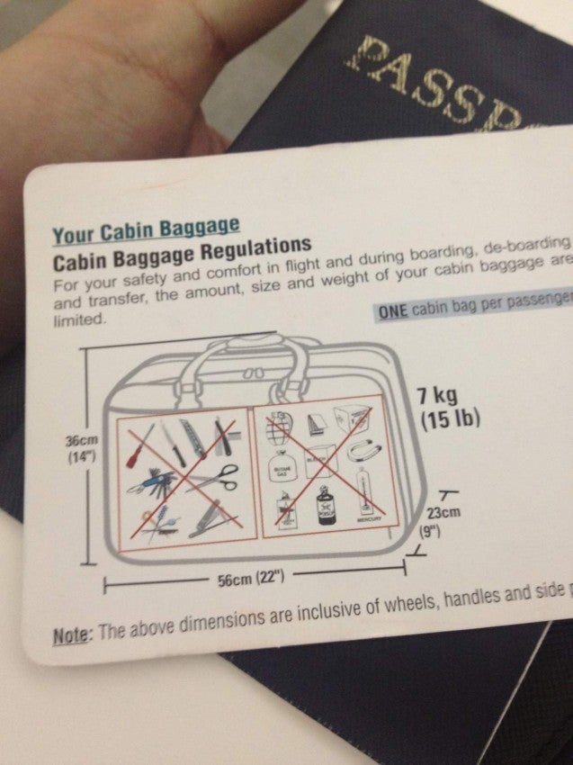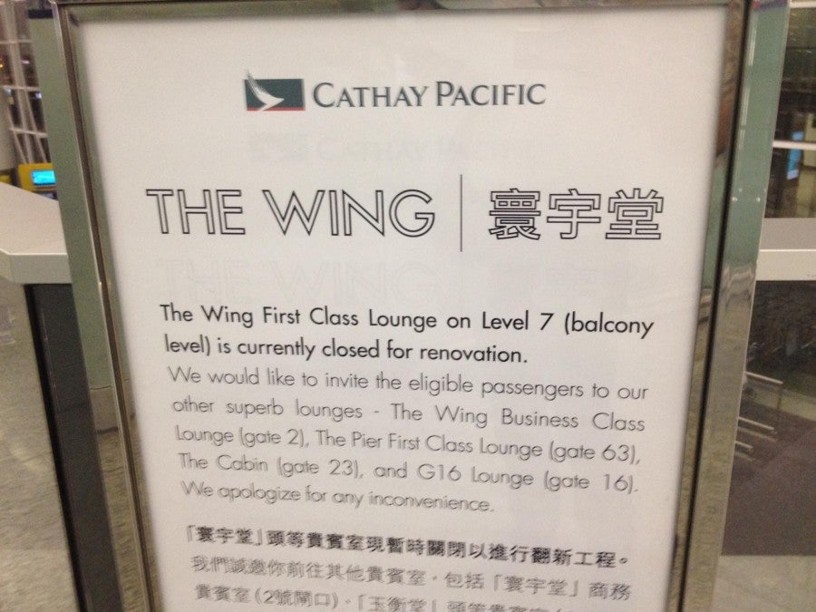 My other big problem came, however, in the security line at the airport. I brought along my wheelie Tumi rollerboard, which I've taken as my carry on everywhere and never had a problem. Until now. The security lady escorted me back to the Cathay check-in desk where the man behind the counter agreed the size was 100% compliant, but he then made me weigh it and said it was over the measly 7kg (15 pound) limit, so I had to check it. I thought that was ridiculous, especially since I would have an overhead bin entirely to myself in First Class, but there was nothing I could say to get them to let me take it onboard with me, so I had to grab a few things out of it then check it and deal with the loss of the control and wish my bag a safe journey.
