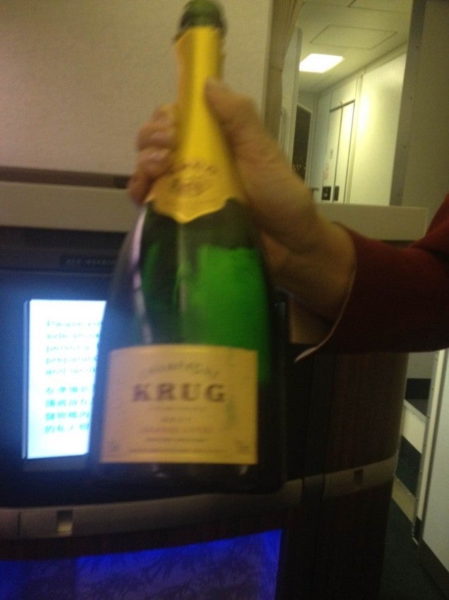 After that frustrating experience it was time for a glass of champagne at the First Class lounge...or so I thought. When I got to The Wing lounge, it turns out the First Class section was closed for renovations, so instead there was just a partitioned off area of the main business class lounge, which was empty. I was a little disappointed, but the service was good, they kept refilling my glass, and the snacks were tasty, though I saved my appetite for the flight since I wanted to experience the onboard cuisine.