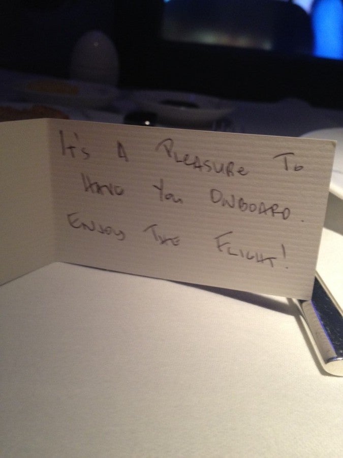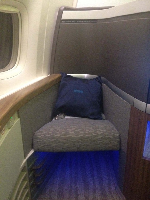 Though boarding was pretty chaotic, once I got into the First Class cabin, all my aggravation melted away and I settled in for a fantastic experience. The seat was cushy and huge. I actually switched from 1K to 1A so a mother and daughter could sit next to each other, and the flight crew thanked me about 10 times.