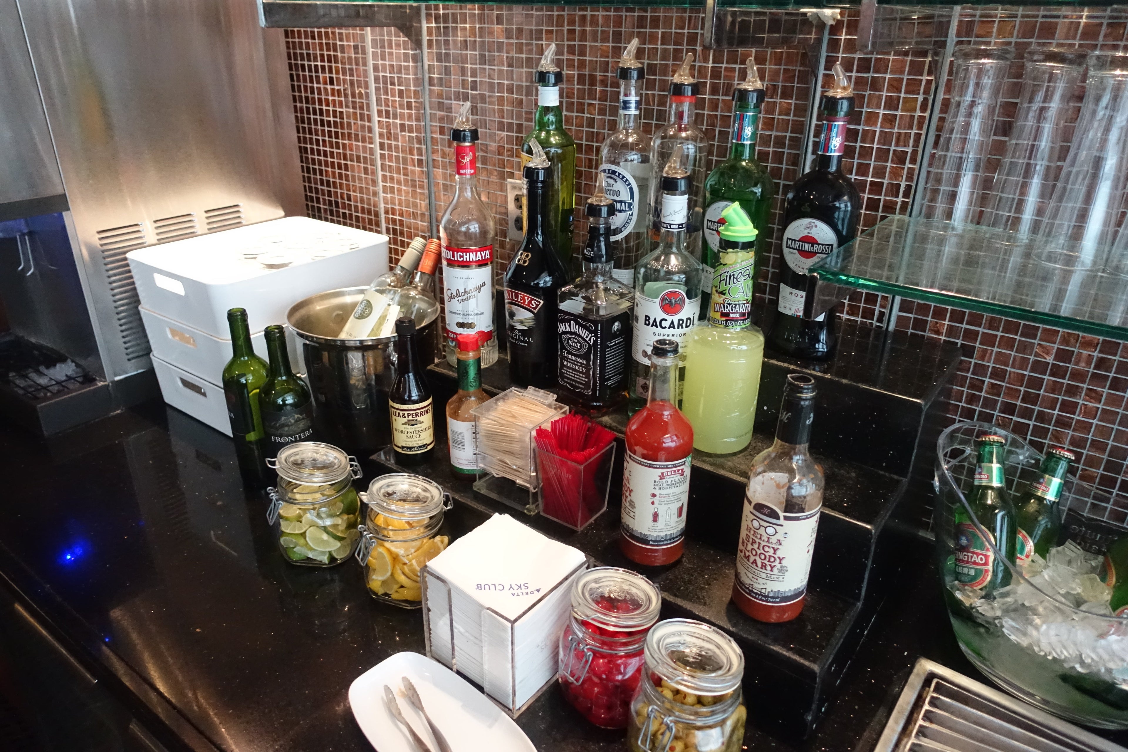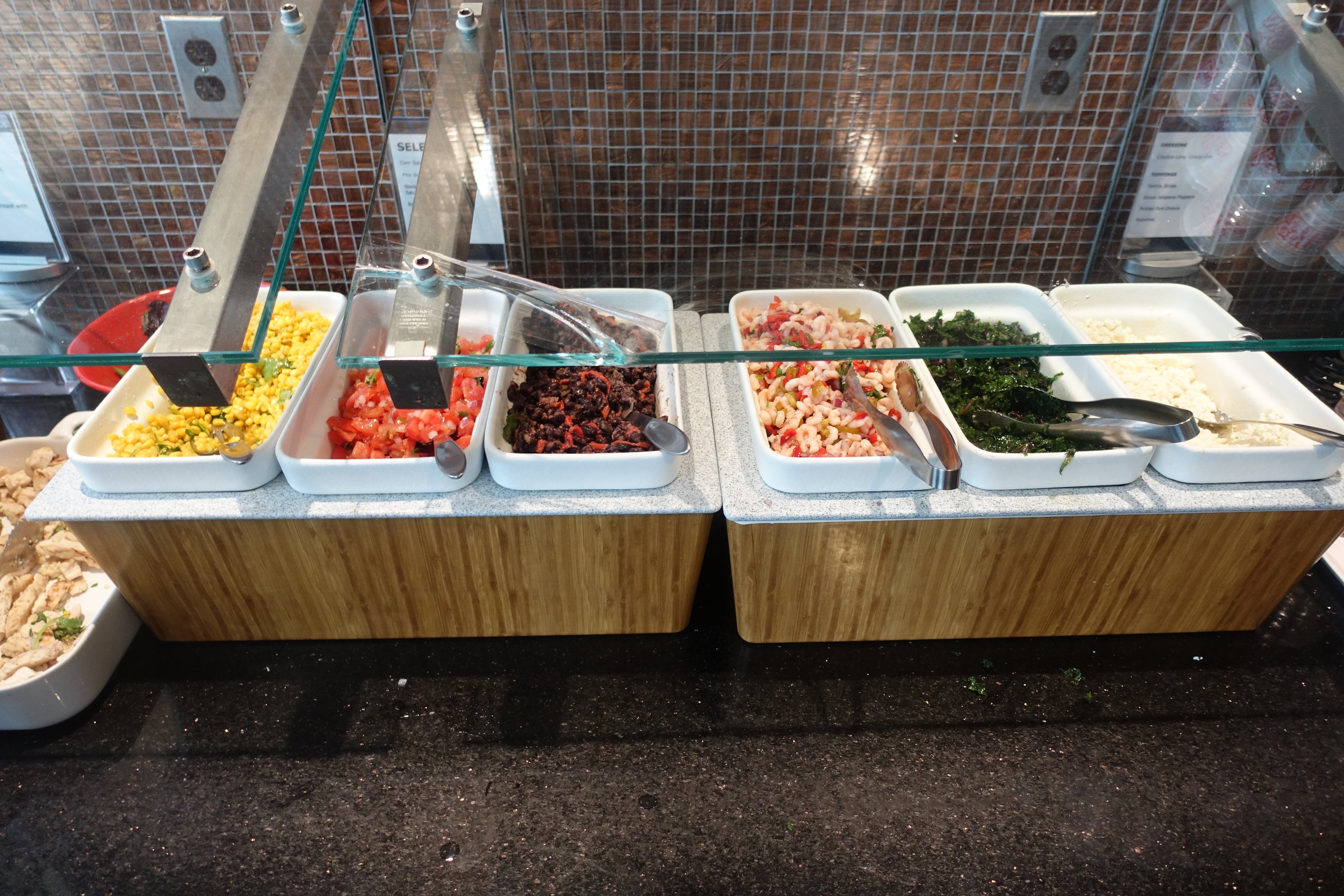 The food in the lounge was great — there was a build-your-own bowl station with fresh and unique ingredients such as shrimp ceviche along with the usual suspects like soup, cheese cubes, vegetables with hummus and more.