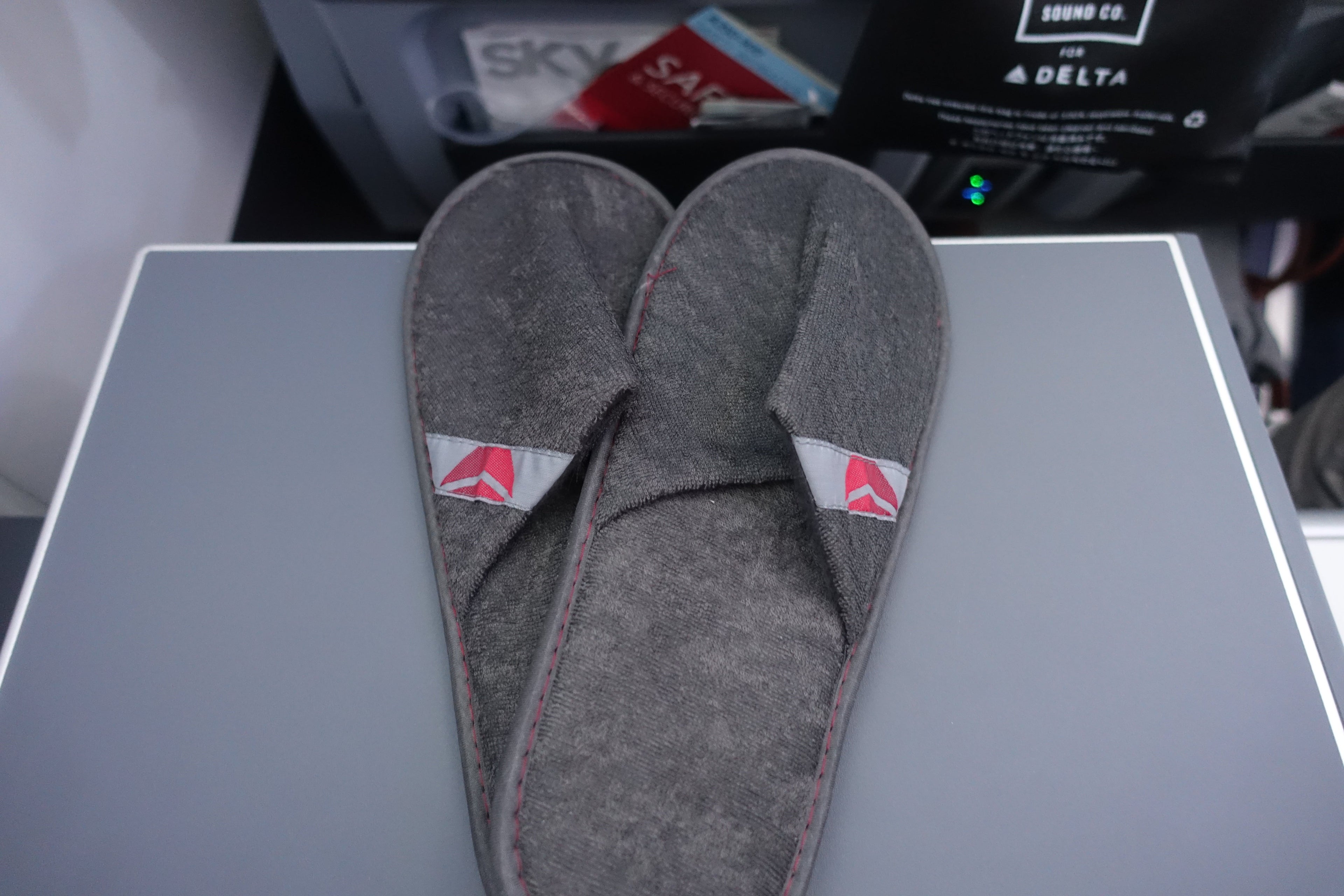 On long-haul flights like these, there's nothing worse than taking off your shoes when you're relaxing or sleeping and then having to put them back on to use the restroom or to stretch your legs in the aisle, which is why I really appreciated having a set of slippers to put on when I wanted to move about the cabin.