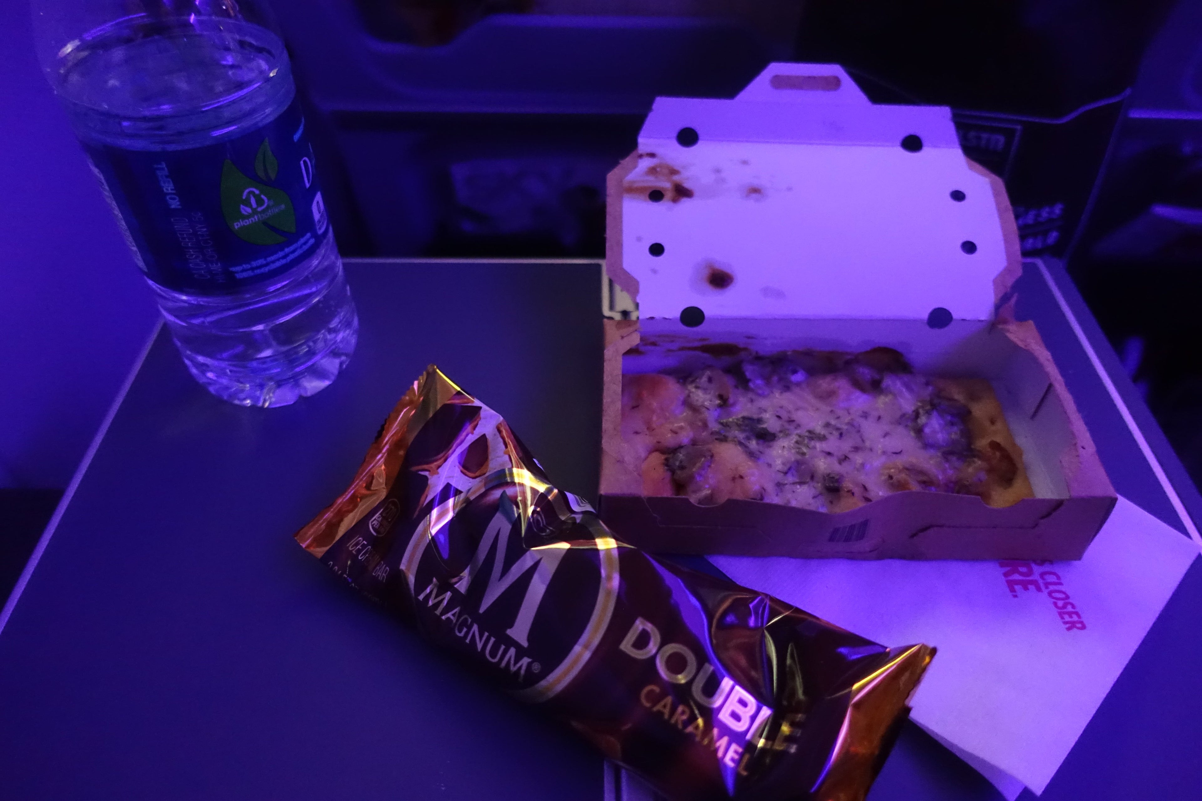 During the flight, there was a primary meal served shortly after takeoff. Since we departed just before 2pm ET, it wasn't really a lunch, but it also wasn't a dinner. After the main meal, there was a hot snack and ice cream, and then before landing there was another meal service.