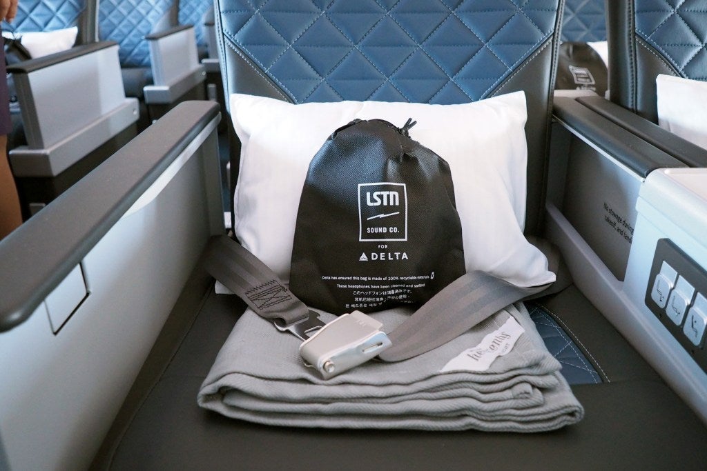 I had some issues with the new LSTN headphones, however. For about half the time I used them, they issued a weird and highly-annoying whining sound that made it difficult to hear the movies I was watching. Other passengers around me and TPG himself, who was in Delta One, noticed the same thing, so until the airline fixes that situation it's recommended that you bring your own headphones if you're flying in Premium Select or higher.