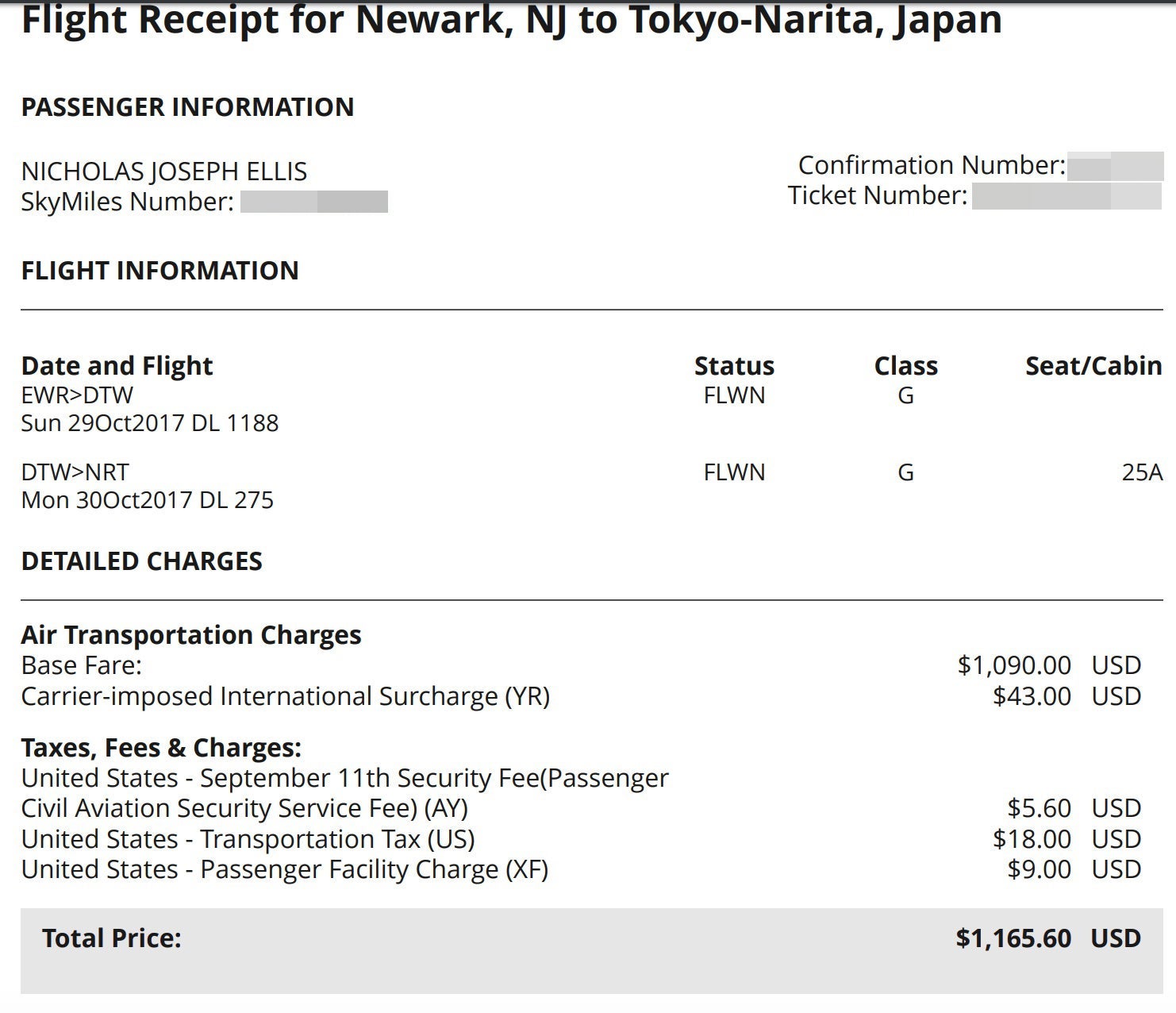 I booked this ticket in cash — paid rates for my one-way ticket weren't outrageous like those that you'd find if you were booking a ticket in Delta One. In total, my ticket cost $1,166. I paid with The Platinum Card from American Express, meaning I earned a total of 5,830 Membership Rewards points thanks to the 5x bonus category on airfare.