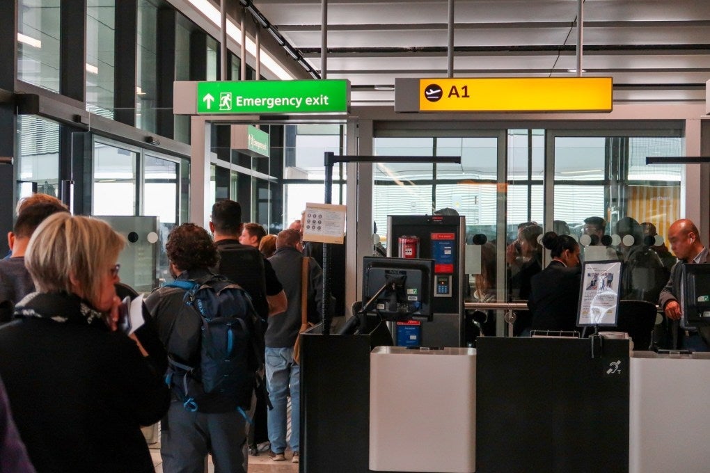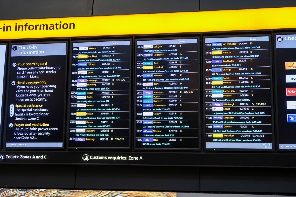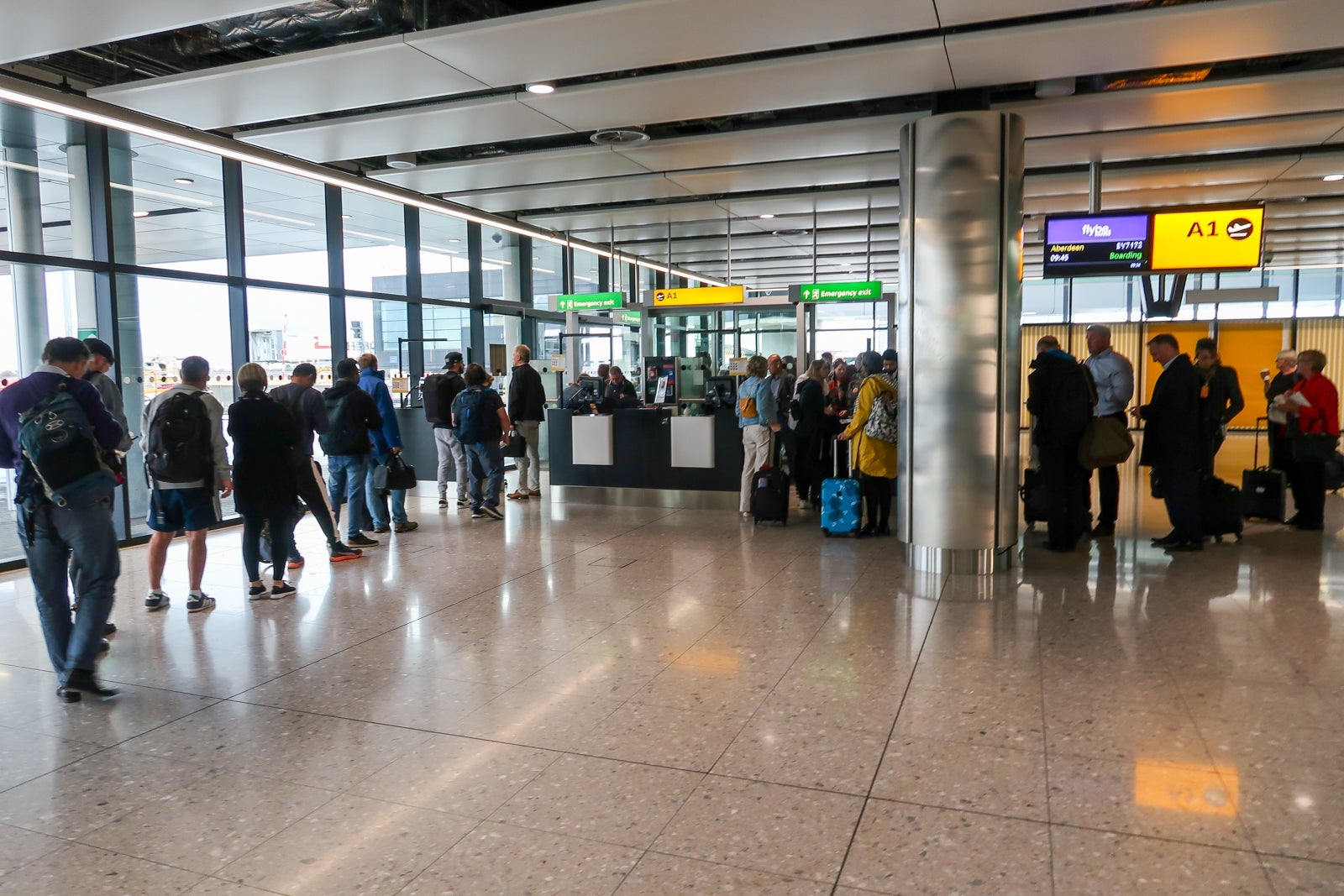 There were only two desks open and no designated self-check-in area. Old school. The whole check-in process took less than five minutes. The friendly agent let me know that bad weather was wreaking havoc at Heathrow and my new departure time would be 10:31 a.m. rather than 9:45 a.m.