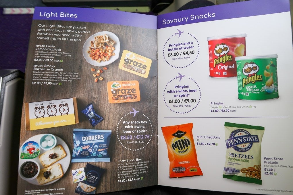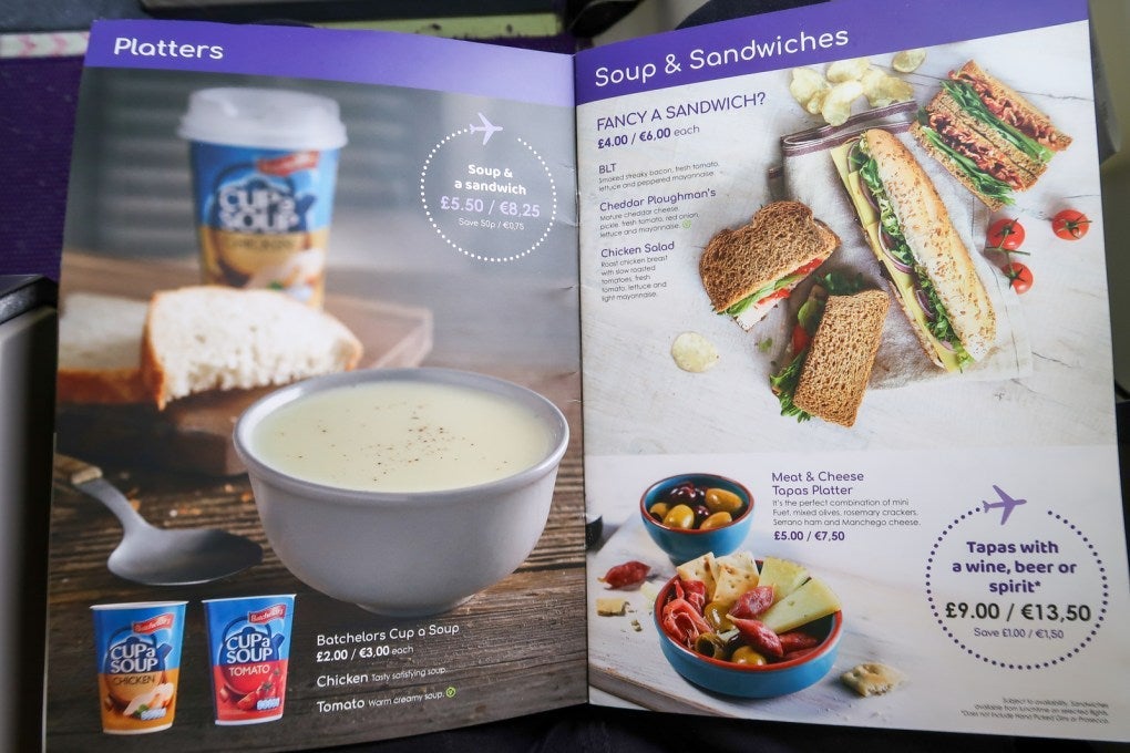 As with most short-haul flights in Europe, there was no free inflight meal service. There was a rather extensive menu of paid food and drink, though.