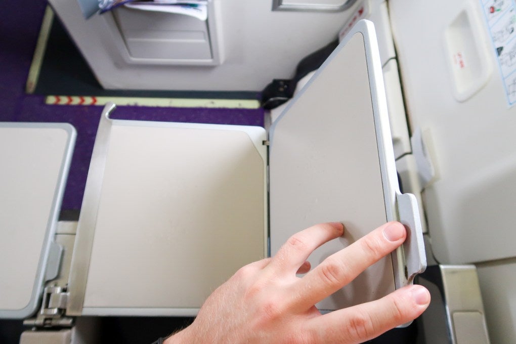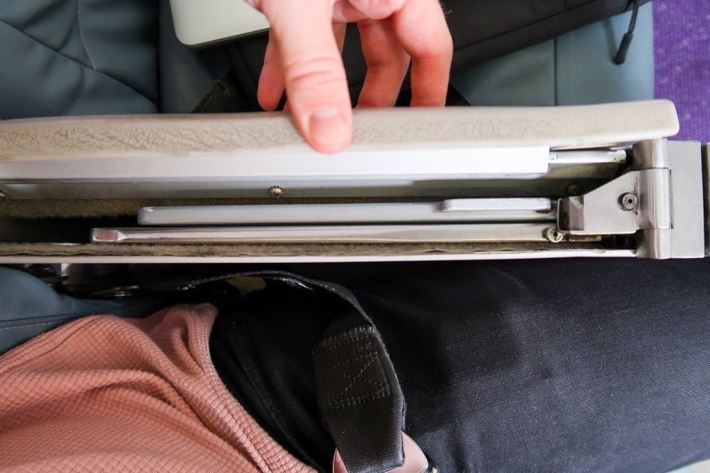 The tray table was bifold, which made it easy to get in and out of the seat, even while there were drinks or other objects on it.T his was only the case for Row 1, as the other rows featured the usual fold-down tray table found in the majority of economy cabins.