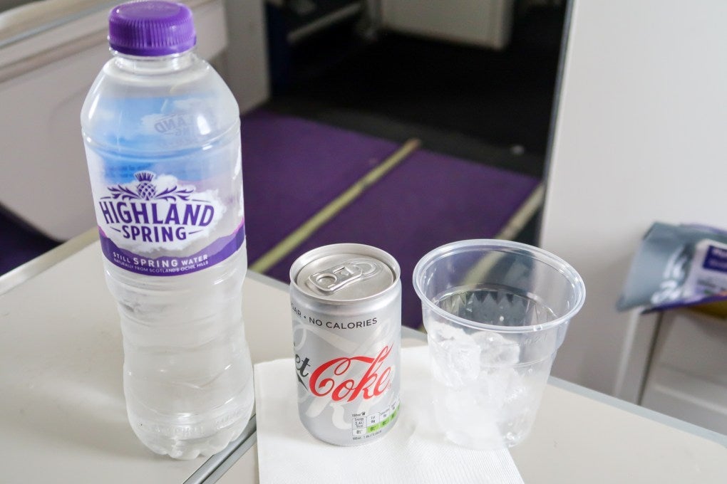 As it was early and the takeoff made me feel really nauseous, I wouldn't have been able to stomach any booze, so I just settled for a water and a Diet Coke.