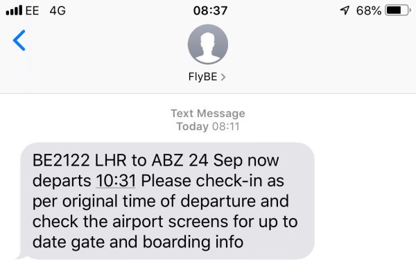 No sooner did I enter the lounge than I received a text from Flybe, once again advising me of the delay.