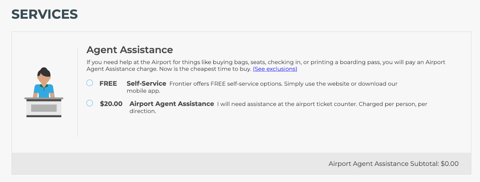 You may be paying for a higher-end bundle, but it's still Frontier: You'll need to download your boarding pass before your flight or print it out at home. Otherwise, you'll have to fork over $20 for counter assistance at the airport.