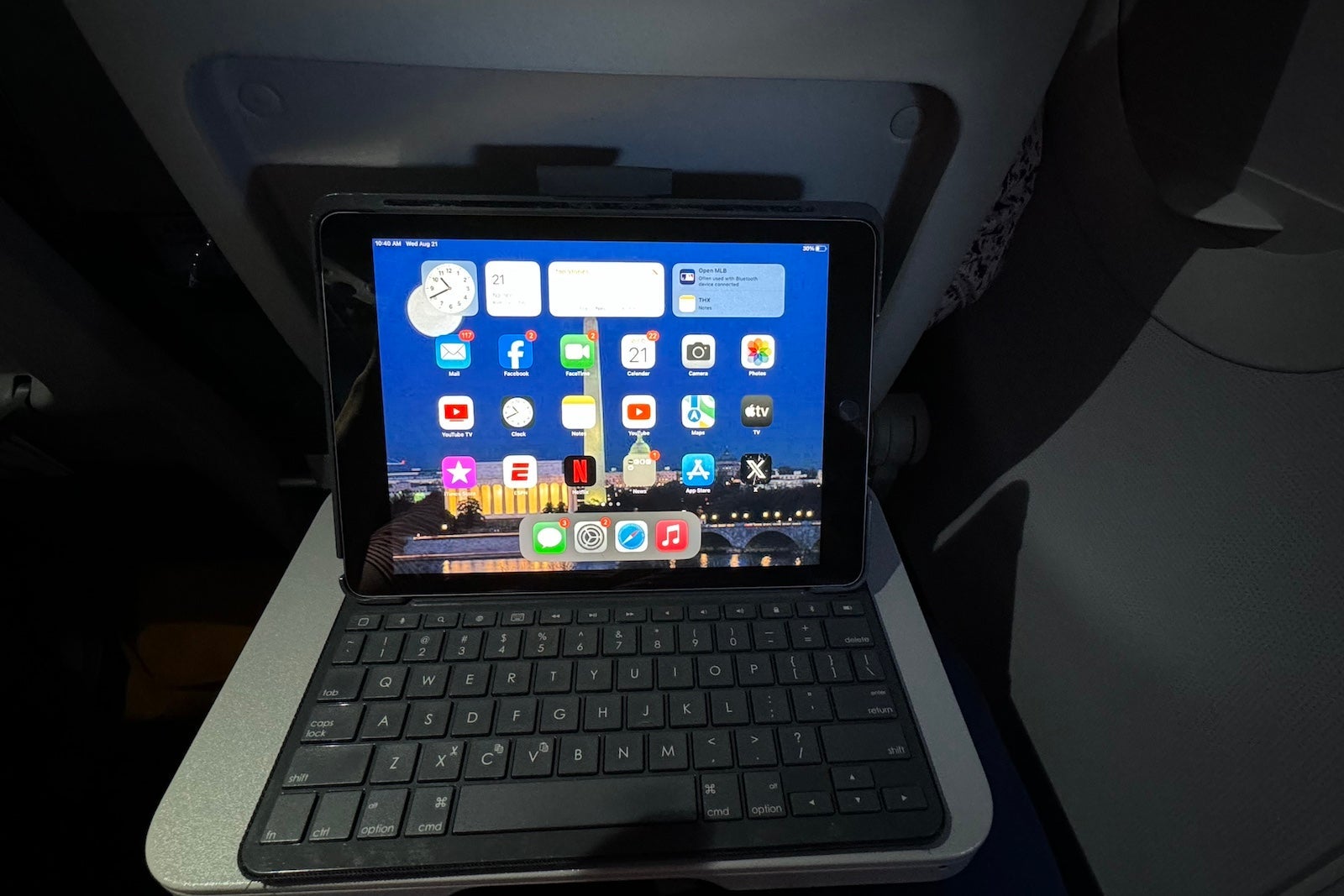 I borrowed it for the middle seat in my row once all passengers boarded, in order to offer a demonstration of what the setup should look like — and to ensure no one sat in the middle seat I'd paid to have empty.