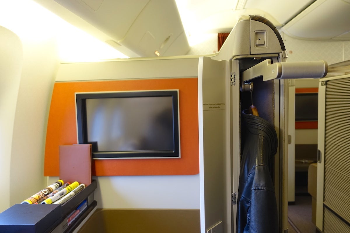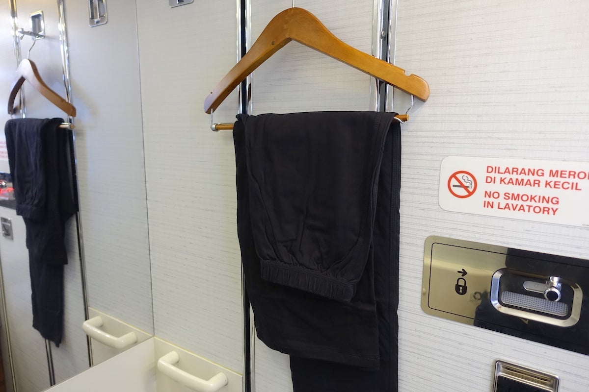 There was also a panel next to the front door of each suite that held a small closet where you could hang up your clothes if you wanted to change into the complimentary pajamas, which were handed out.