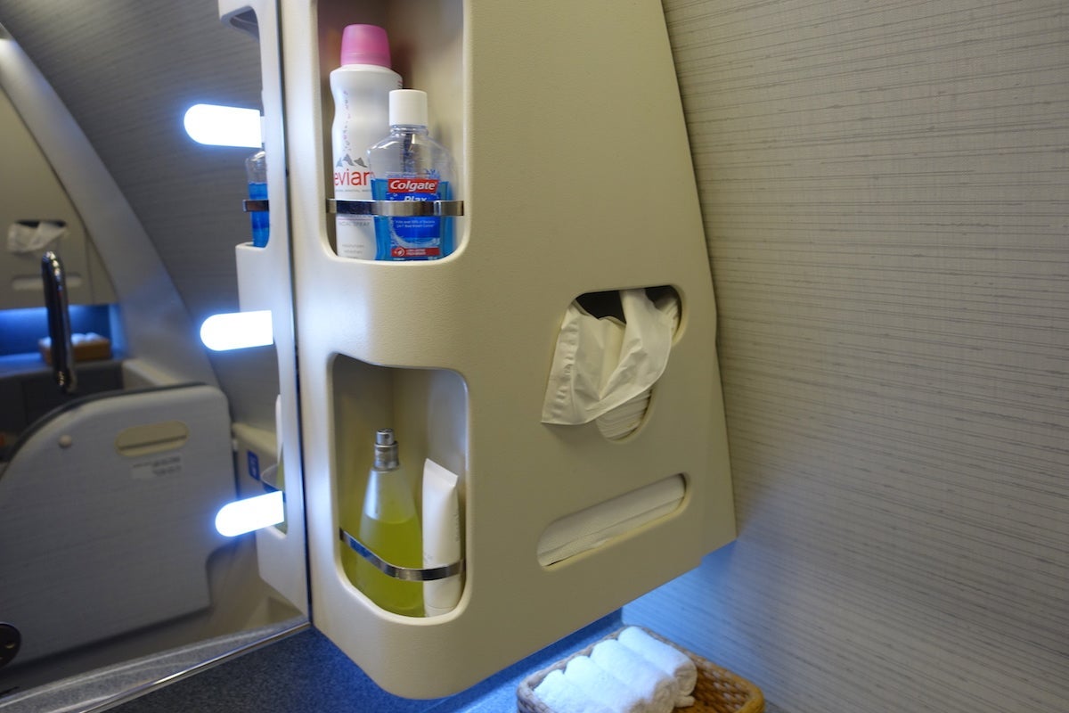 The other shortcoming I found was that there was just a single first-class lavatory. On my first flight, this wasn't a problem, but on the return, where the first-class cabin was full, I ended up using one of the business-class lavs most of the time because the first-class one was occupied.